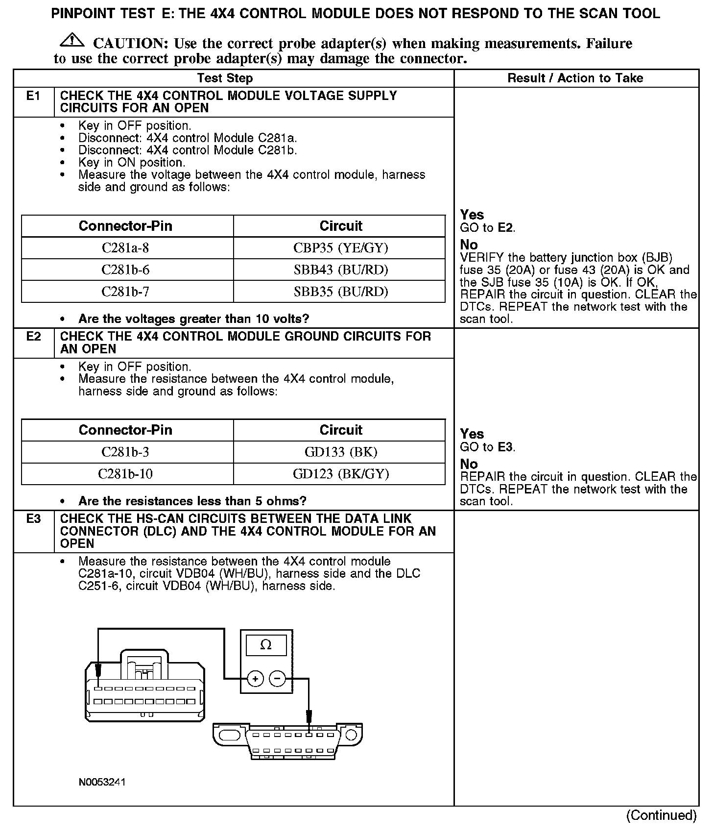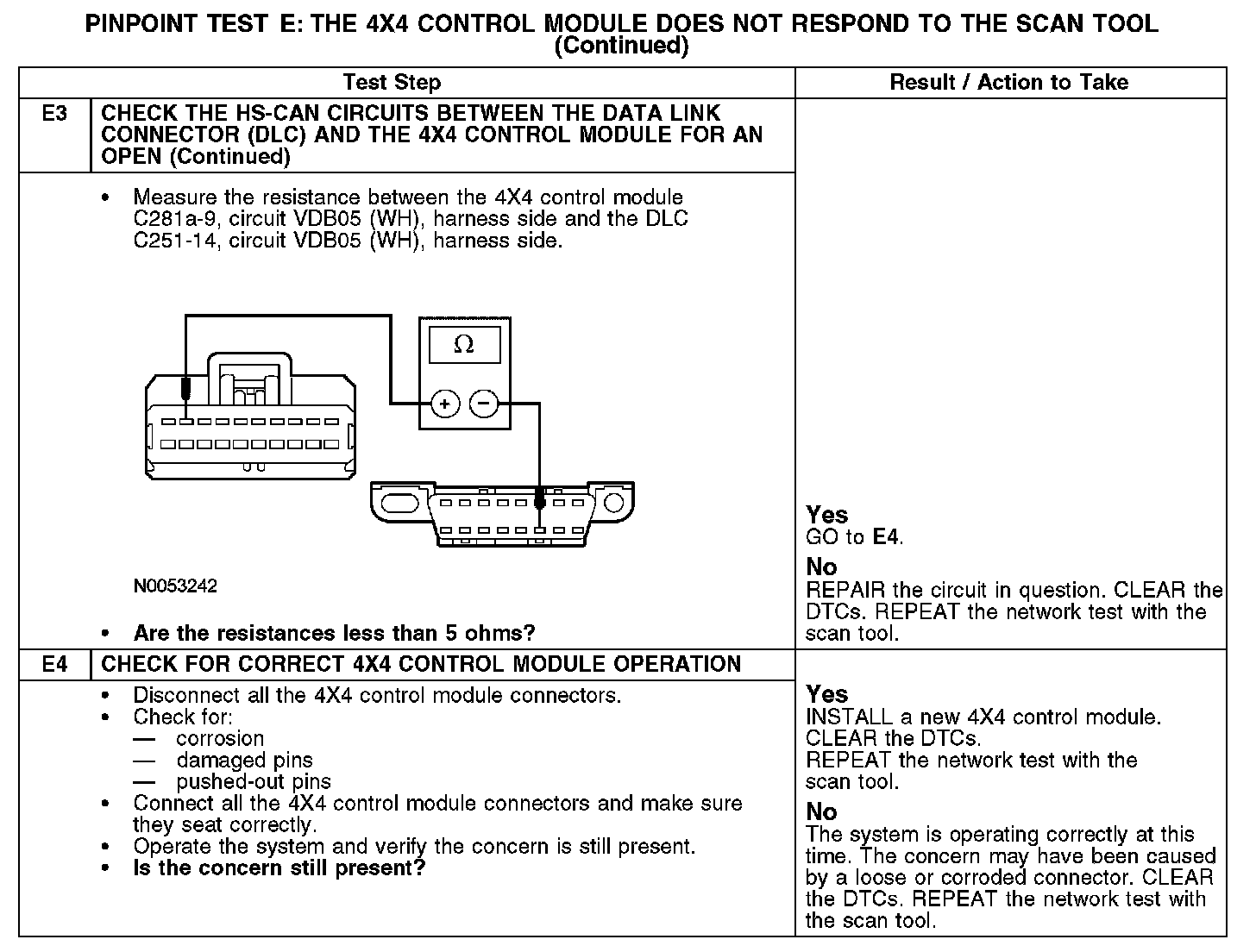 PINPOINT TEST E: THE 4X4 CONTROL MODULE DOES NOT RESPOND TO THE SCAN TOOLNormal Operation