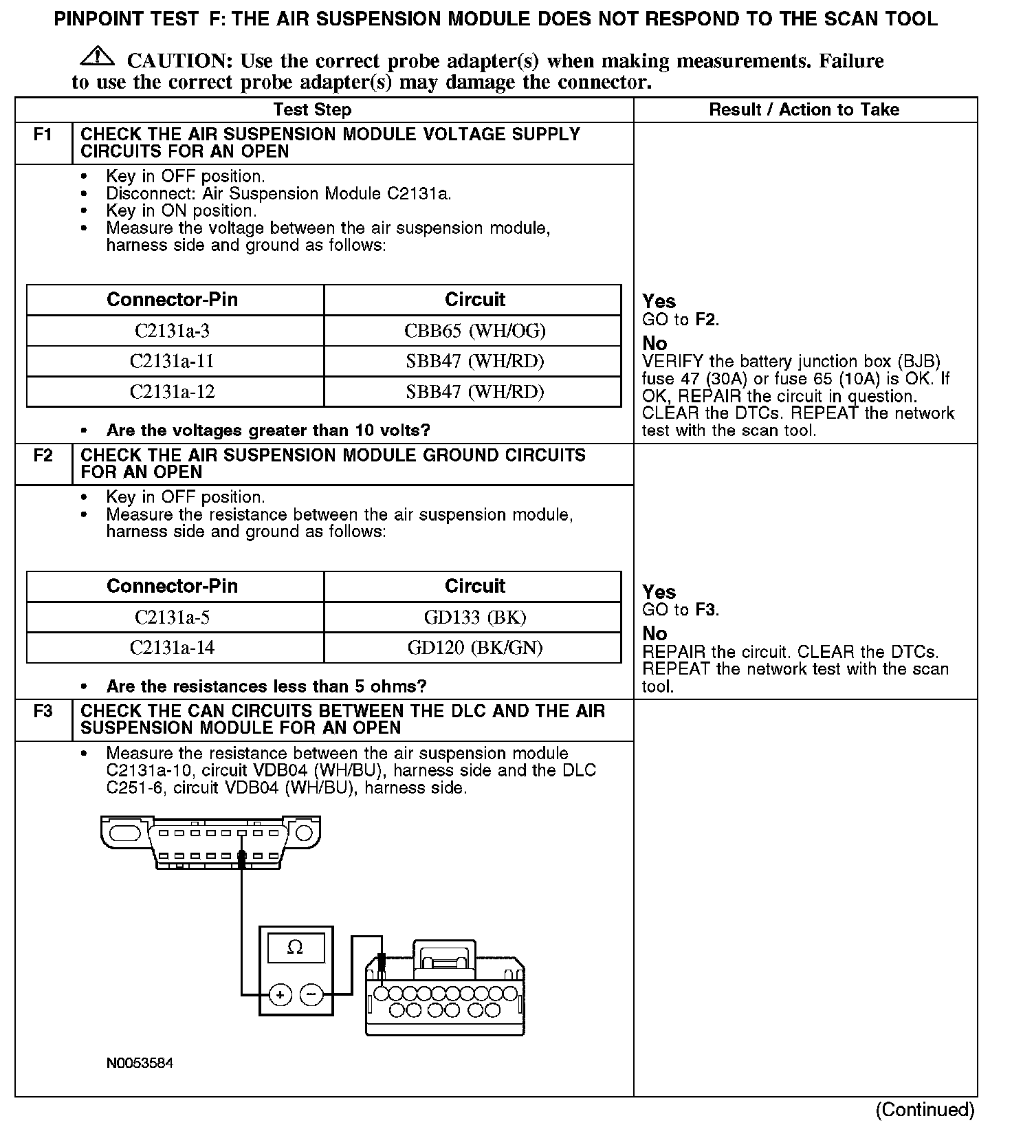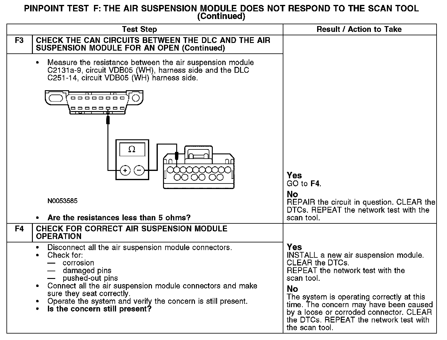 PINPOINT TEST F: THE AIR SUSPENSION MODULE DOES NOT RESPOND TO THE SCAN TOOL