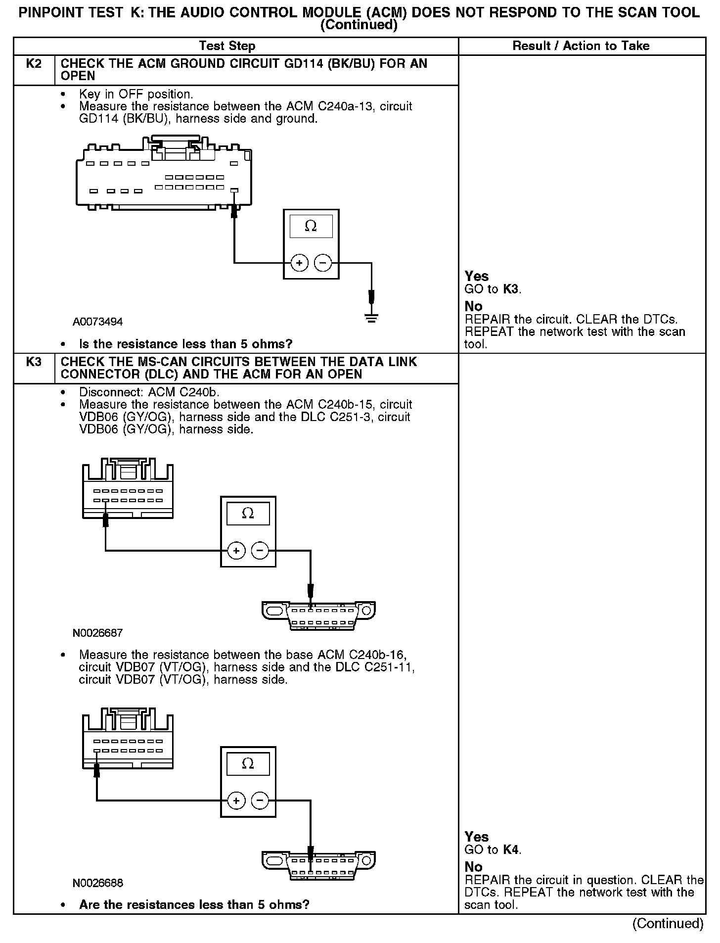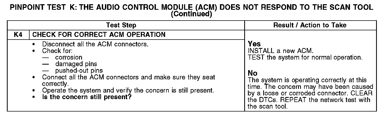 Test K: The Audio Control Module (ACM) Does Not Respond To The Scan Tool