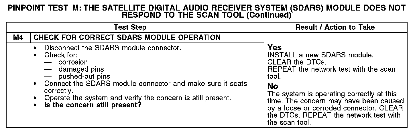 Test M: The Satellite Digital Audio Receiver System (SDARS) Module Does Not Respond To The Scan Tool