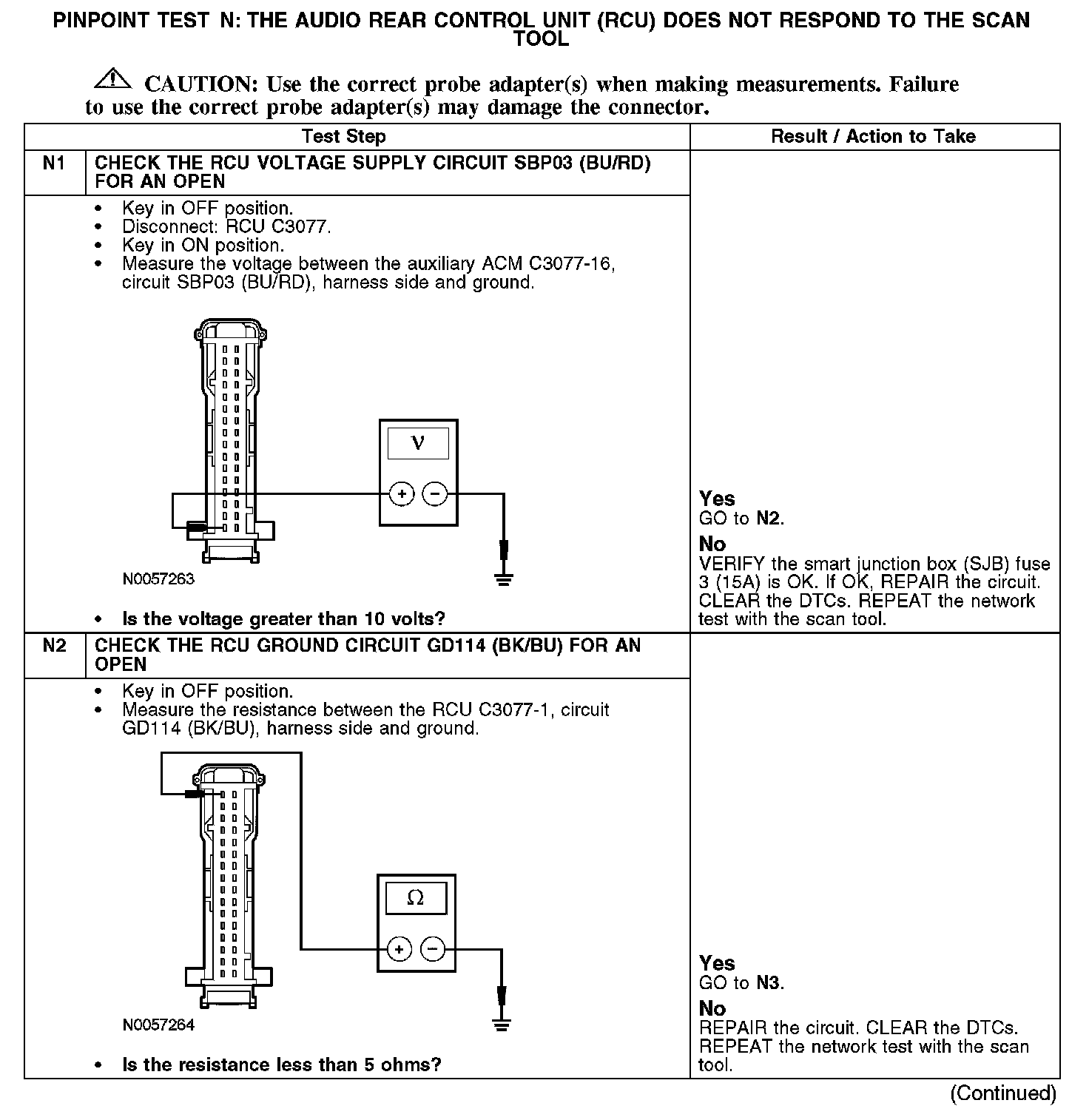 PINPOINT TEST N: THE AUDIO REAR CONTROL UNIT (RCU) DOES NOT RESPOND TO THE SCAN TOOLNormal Operation