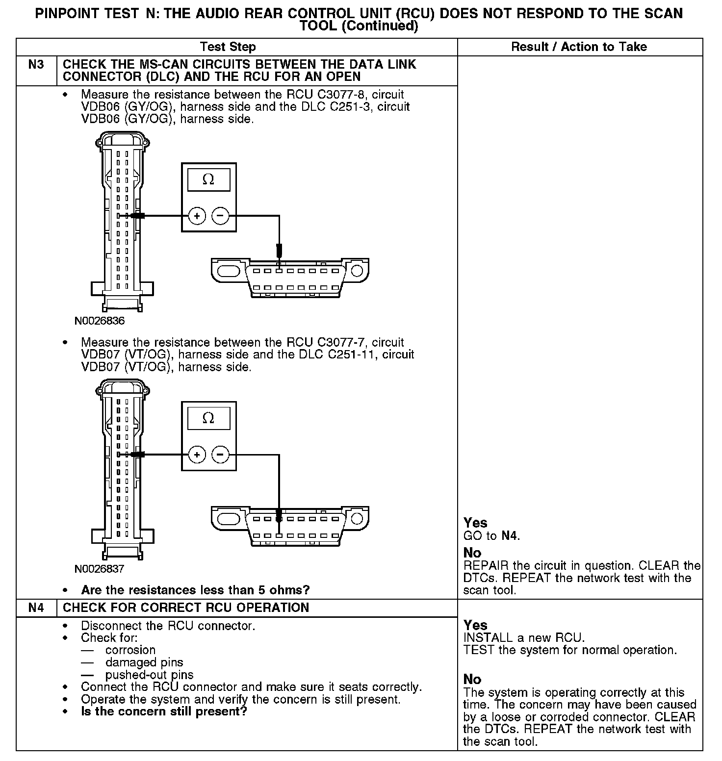 Test N: The Audio Rear Control Unit (RCU) Does Not Respond To The Scan Tool
