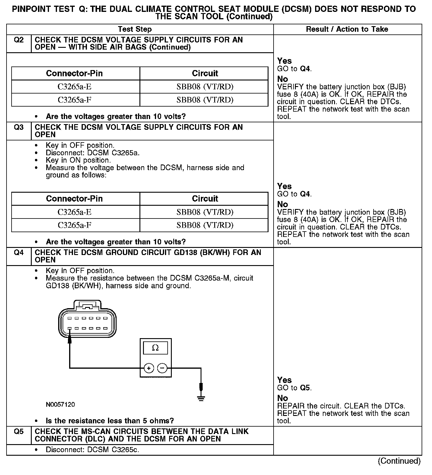 Test Q: The Dual Climate Control Seat Module (DCSM) Does Not Respond To The Scan Tool