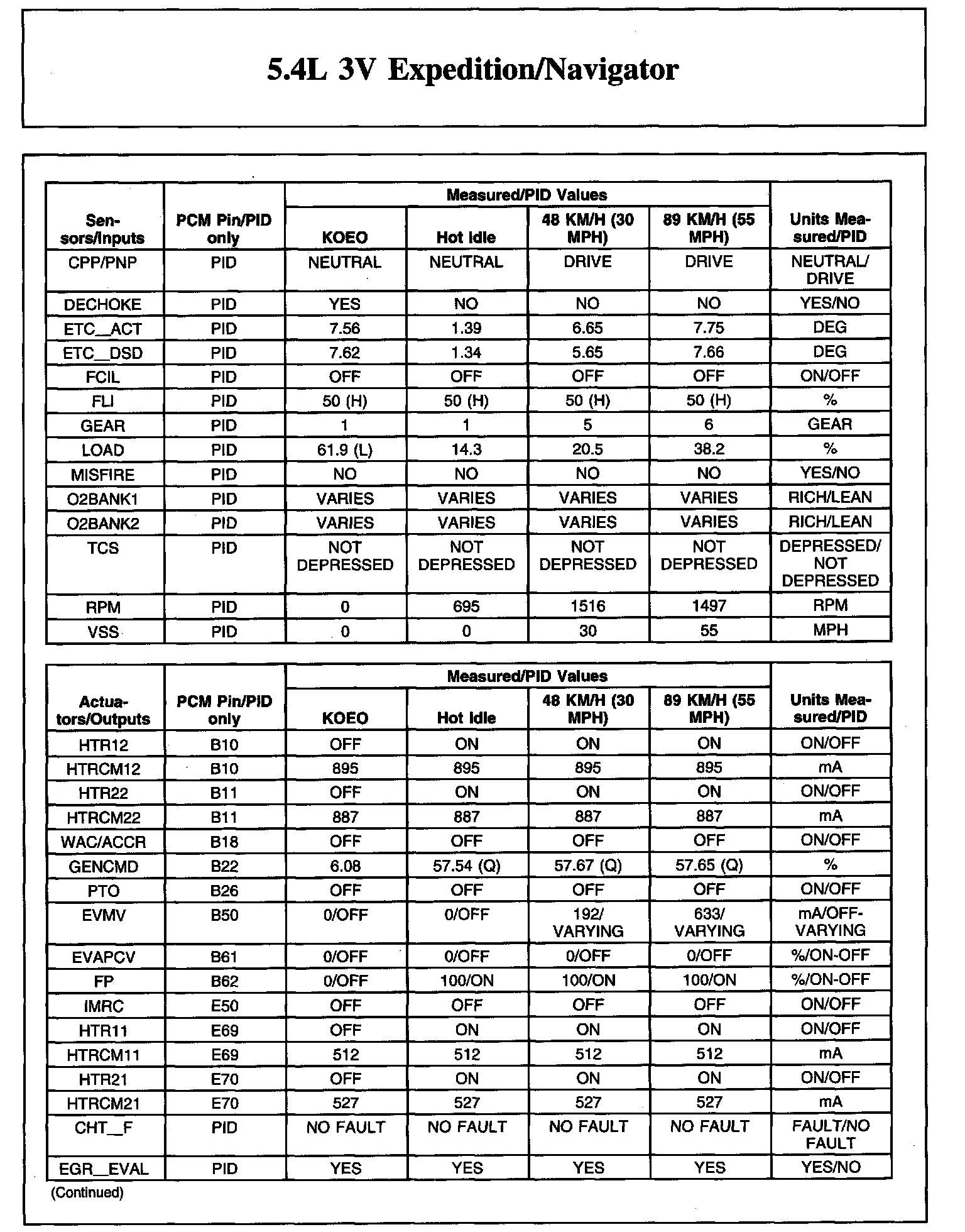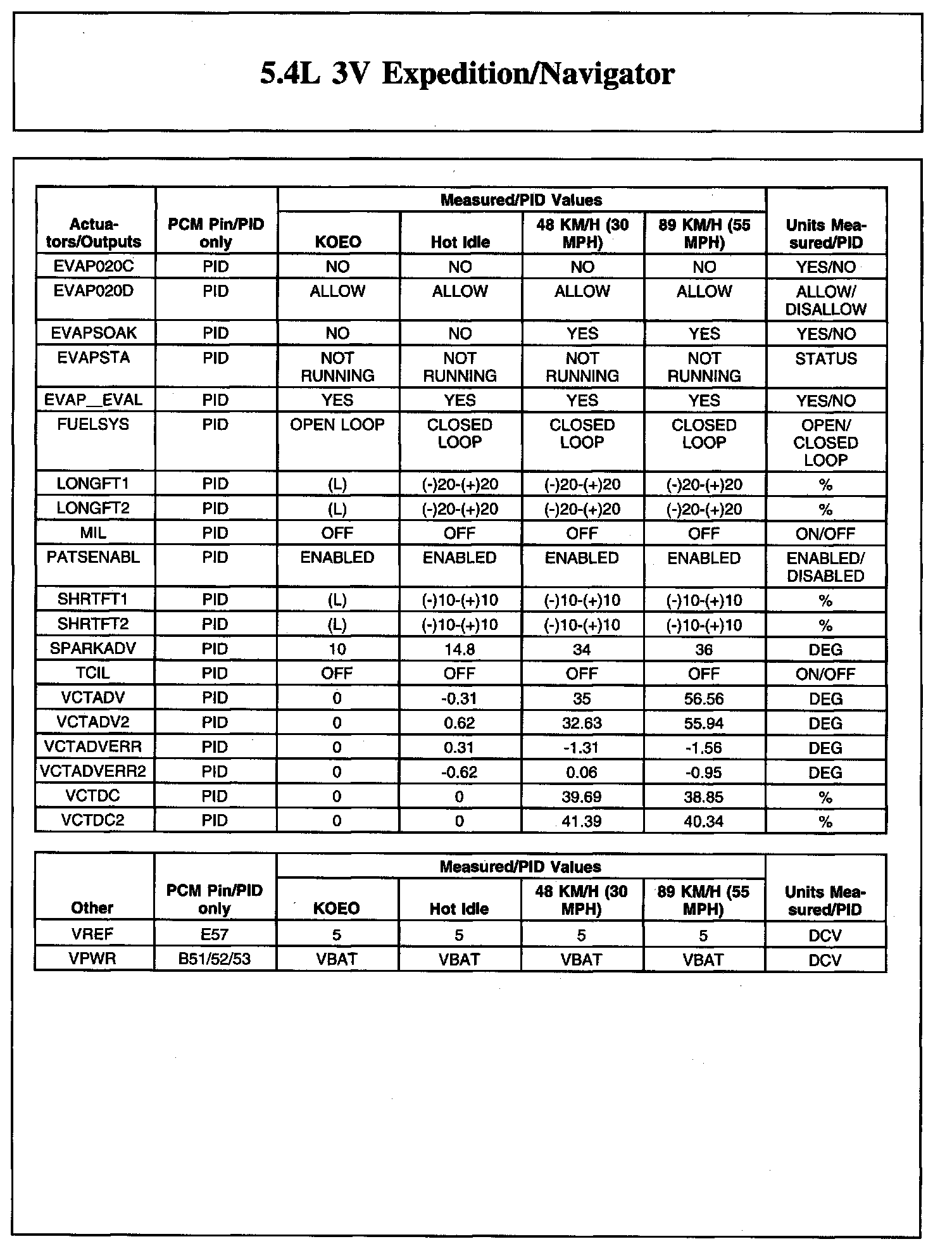 The Typical Diagnostic Reference Value Charts do not display fault parameter identifications (PIDs). These are PIDs which indicate a hard fault with the circuit. They display a value of YES or NO and are PIDs ending with the letter F.