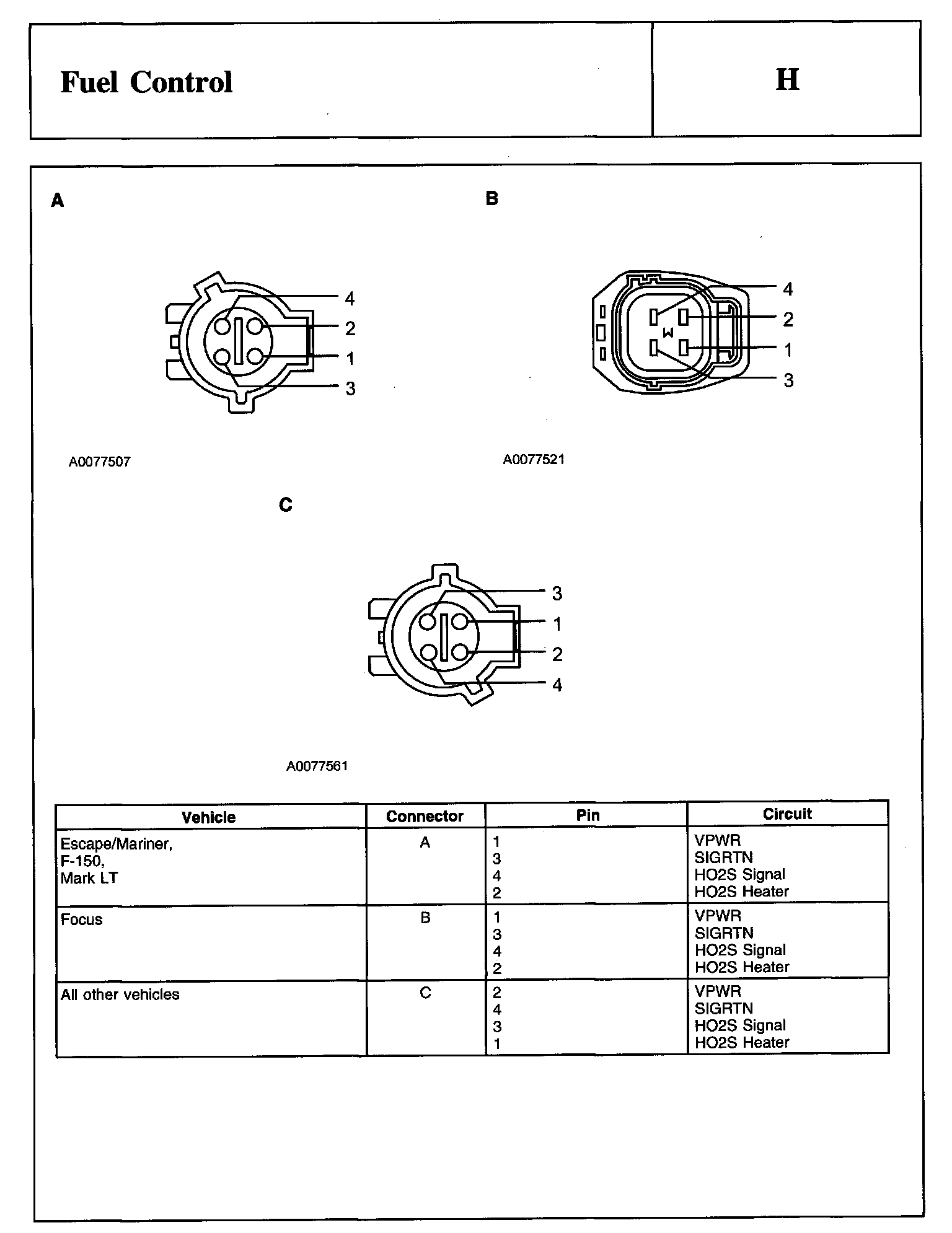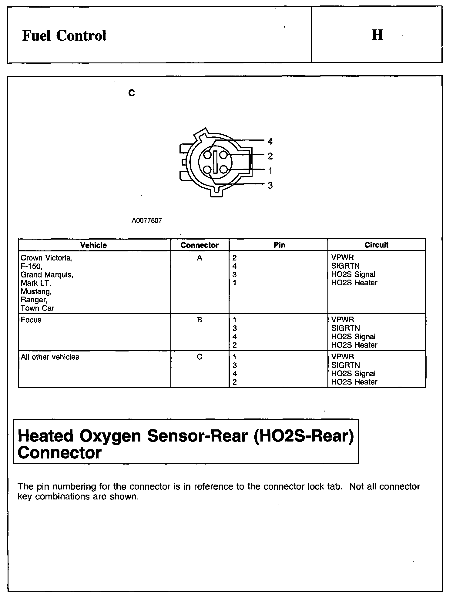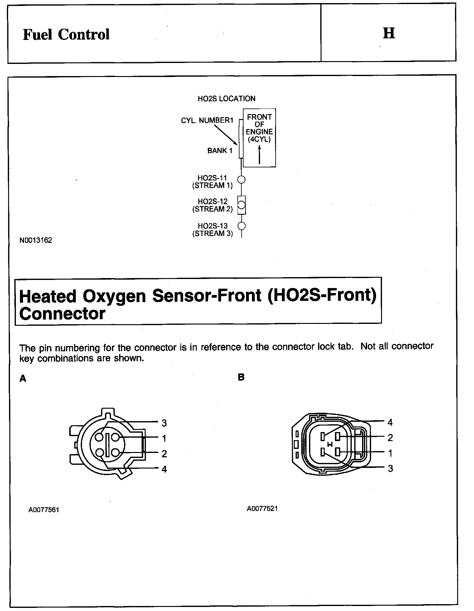 Heated Oxygen Sensor-Front (HO2S-Front) Connector And Heated Oxygen Sensor-Rear (HO2S-Rear) Connector: