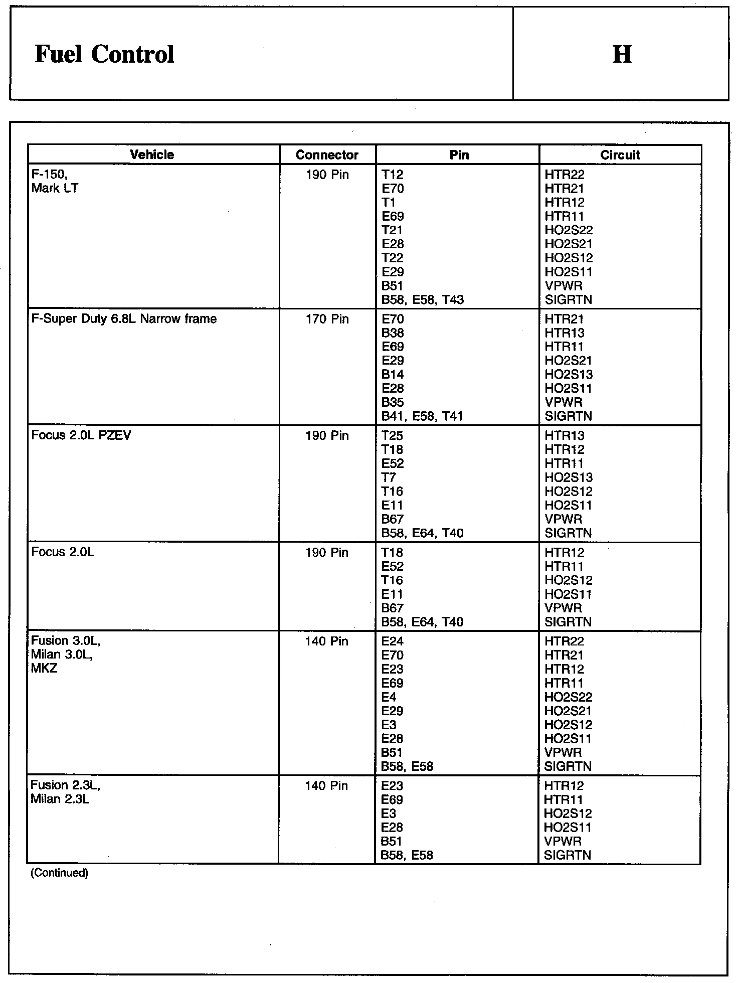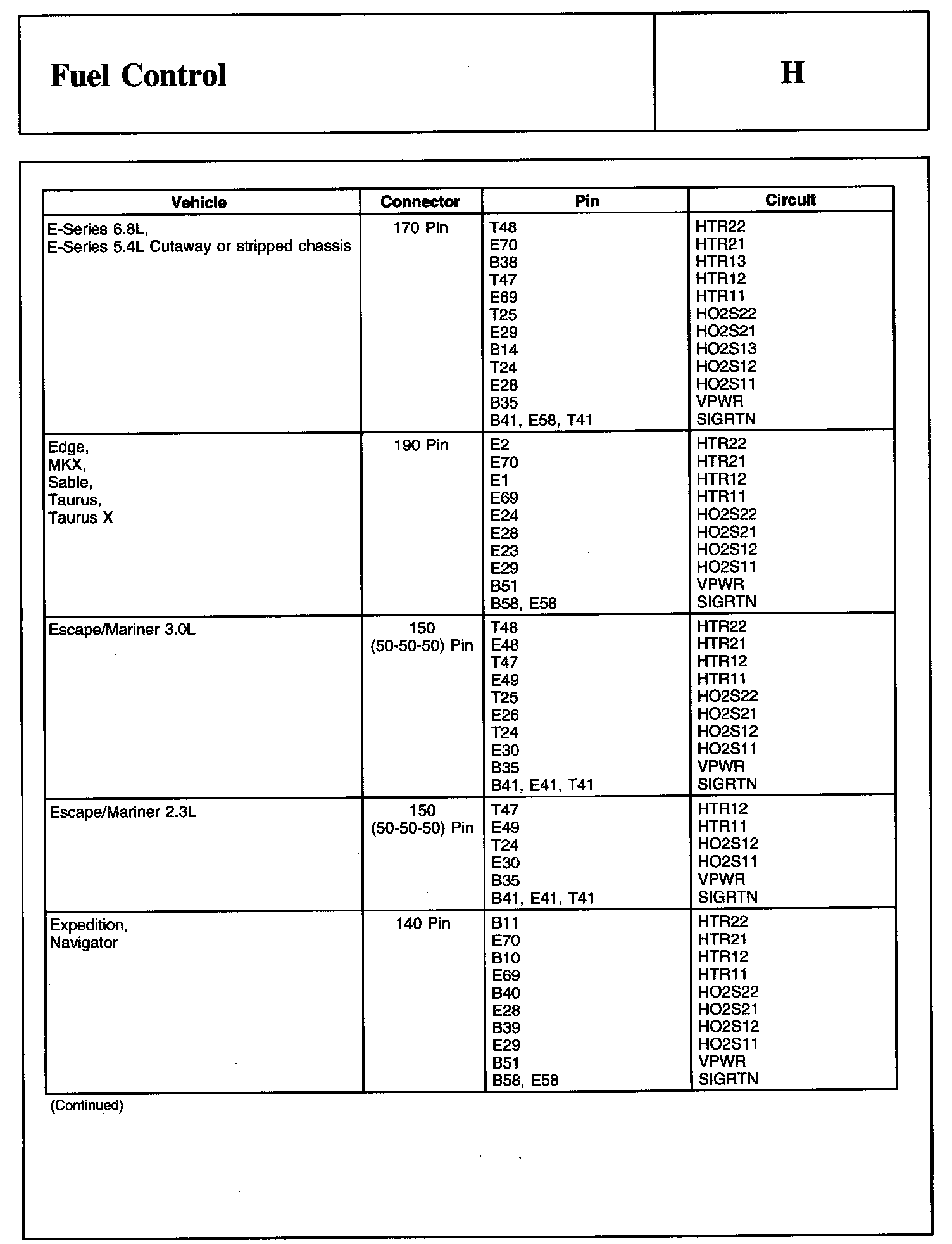Heated Oxygen Sensor-Rear (HO2S-Rear) Connector Continued: