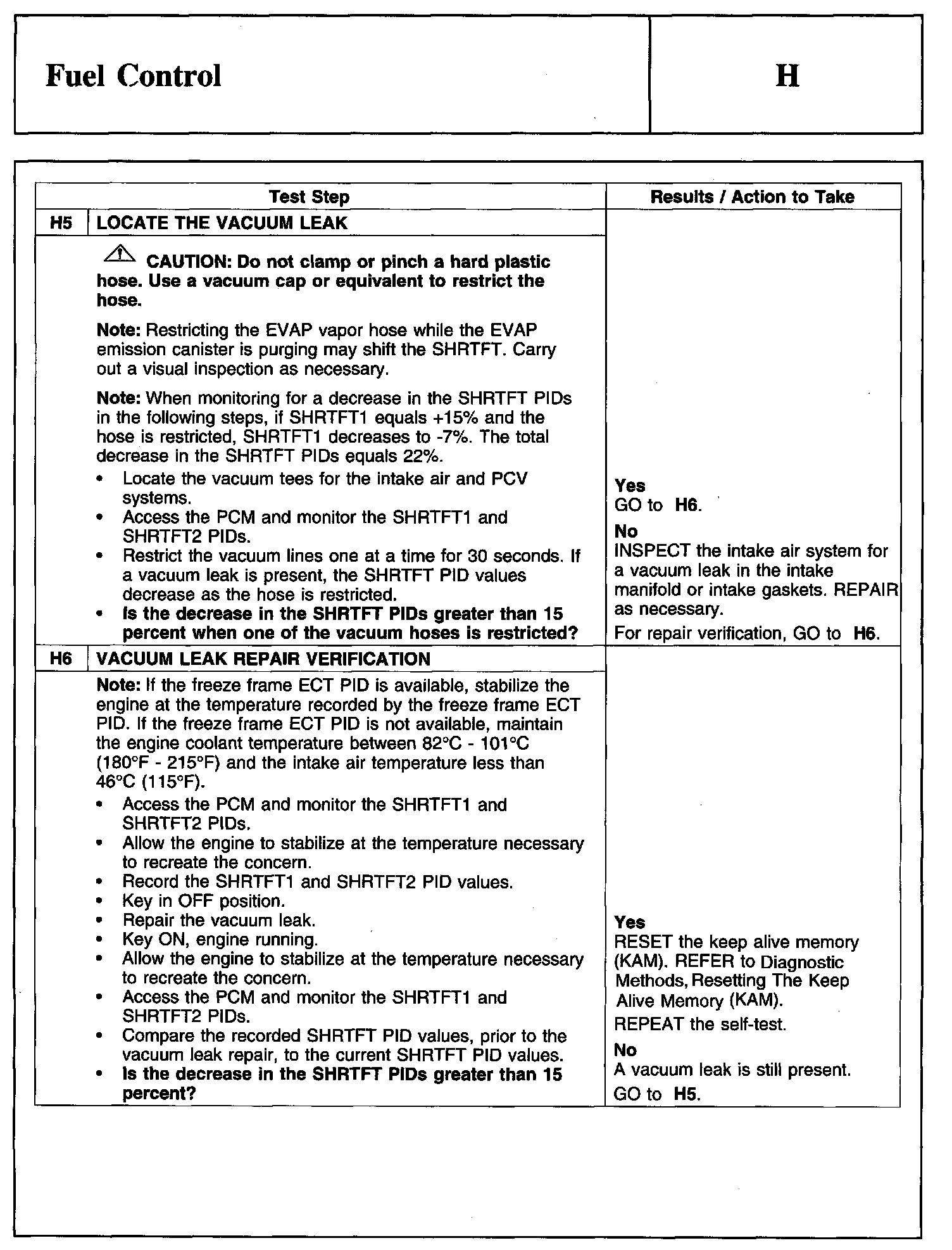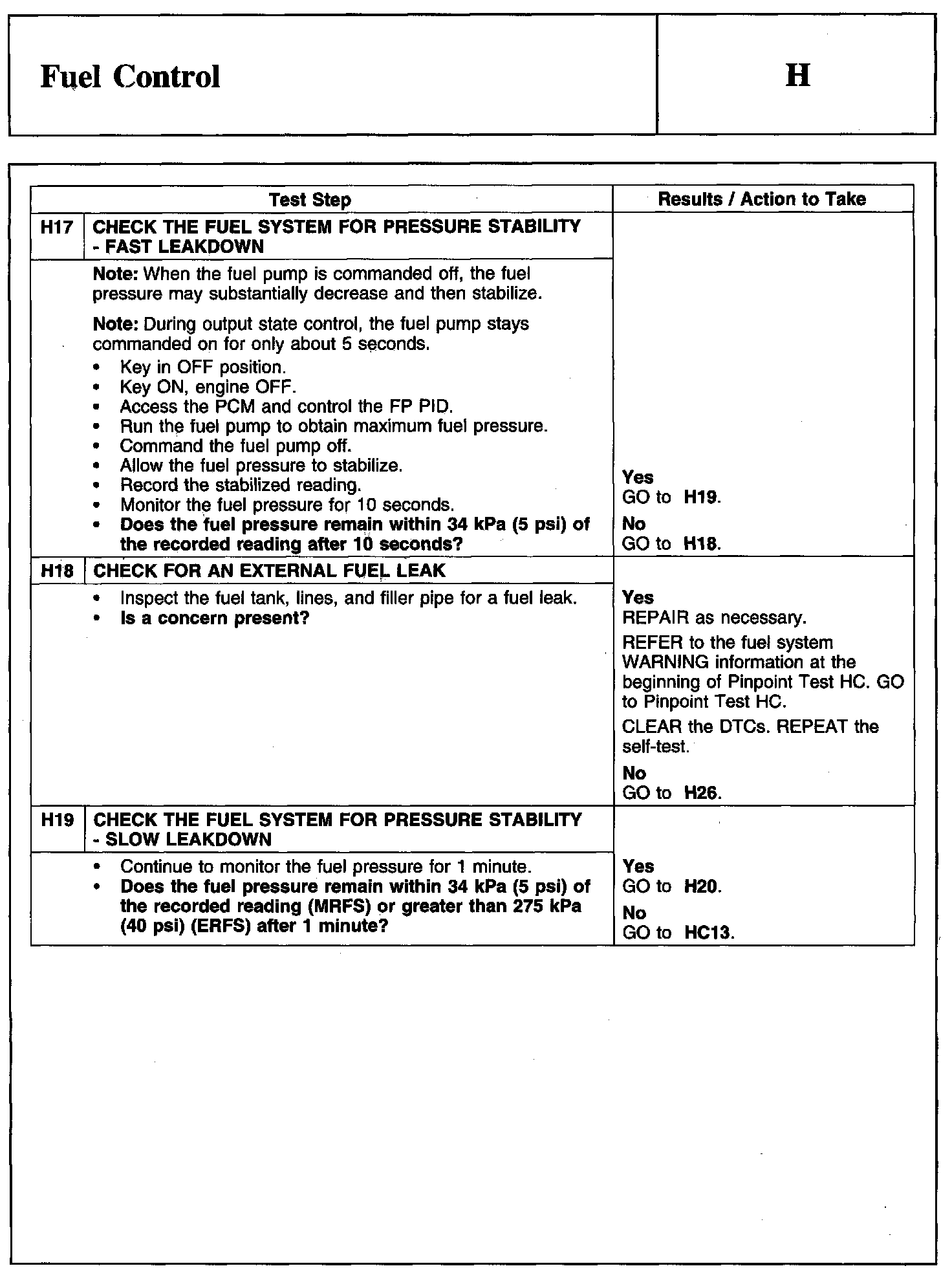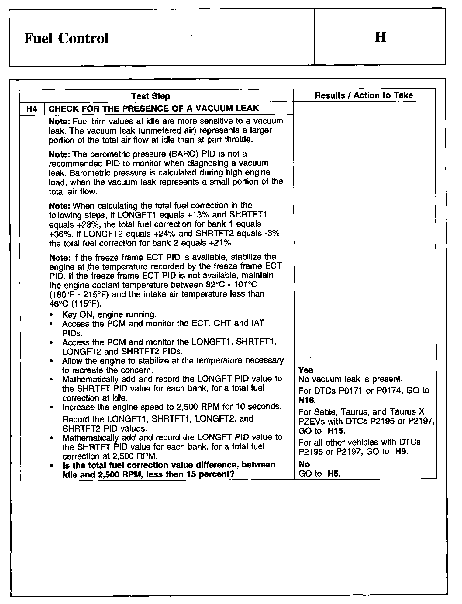 PINPOINT TEST H: FUEL CONTROL