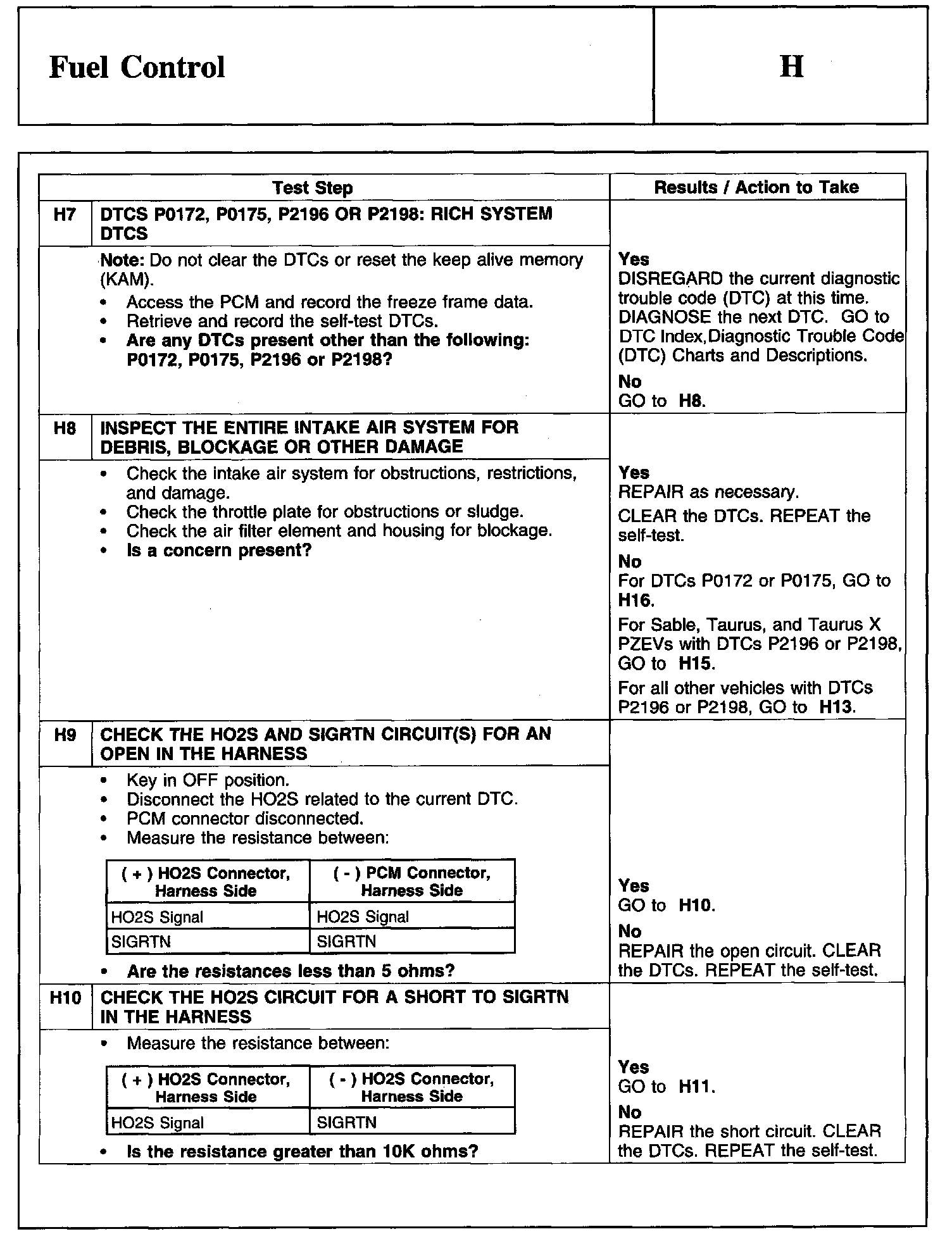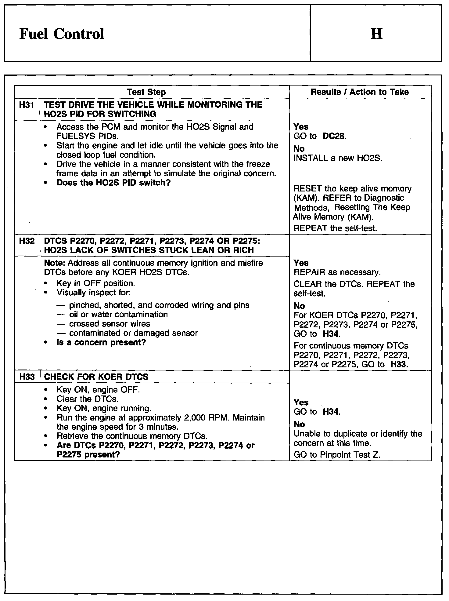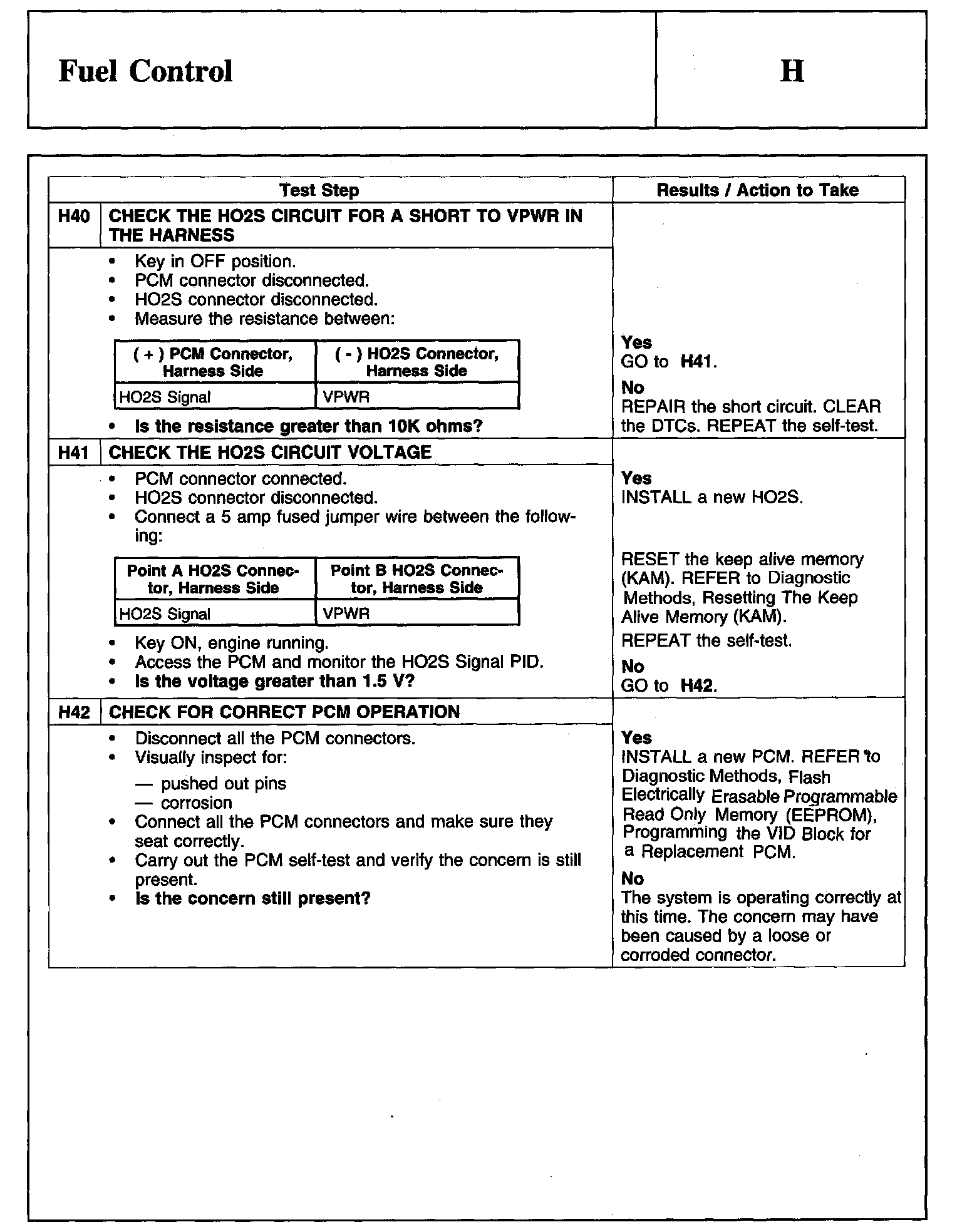 PINPOINT TEST H: FUEL CONTROL