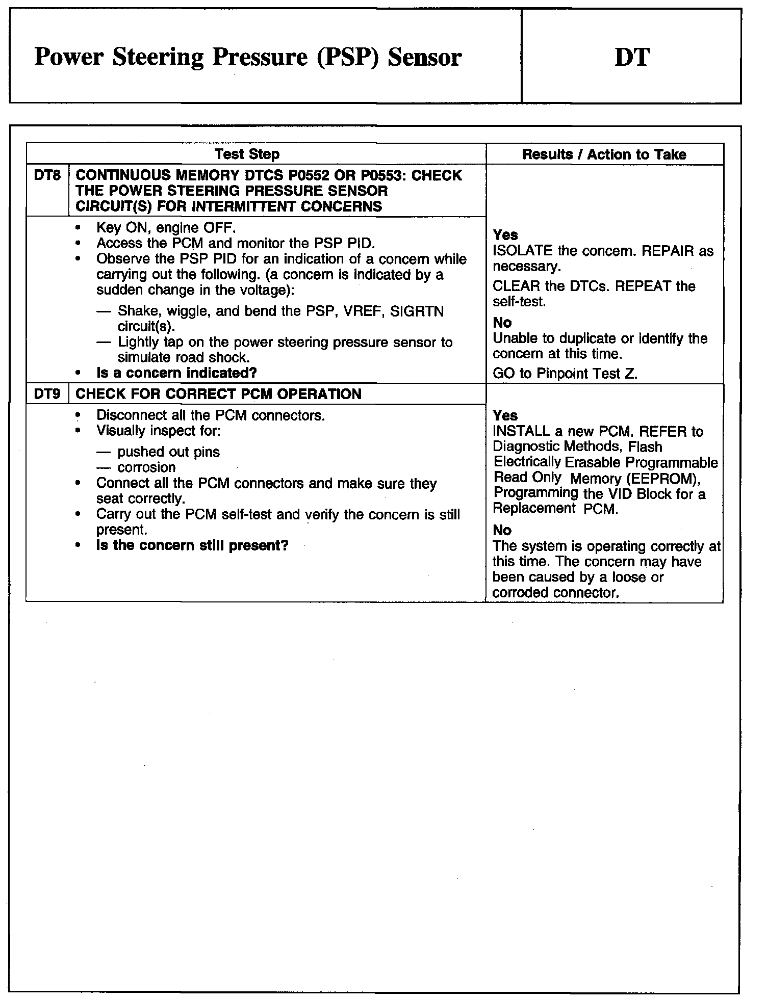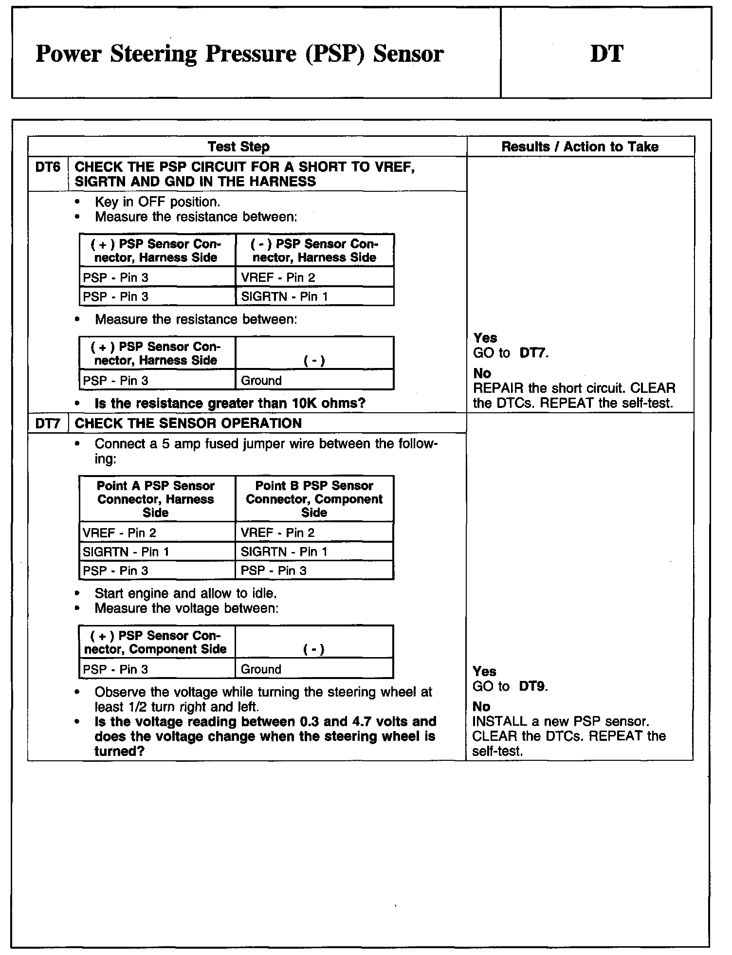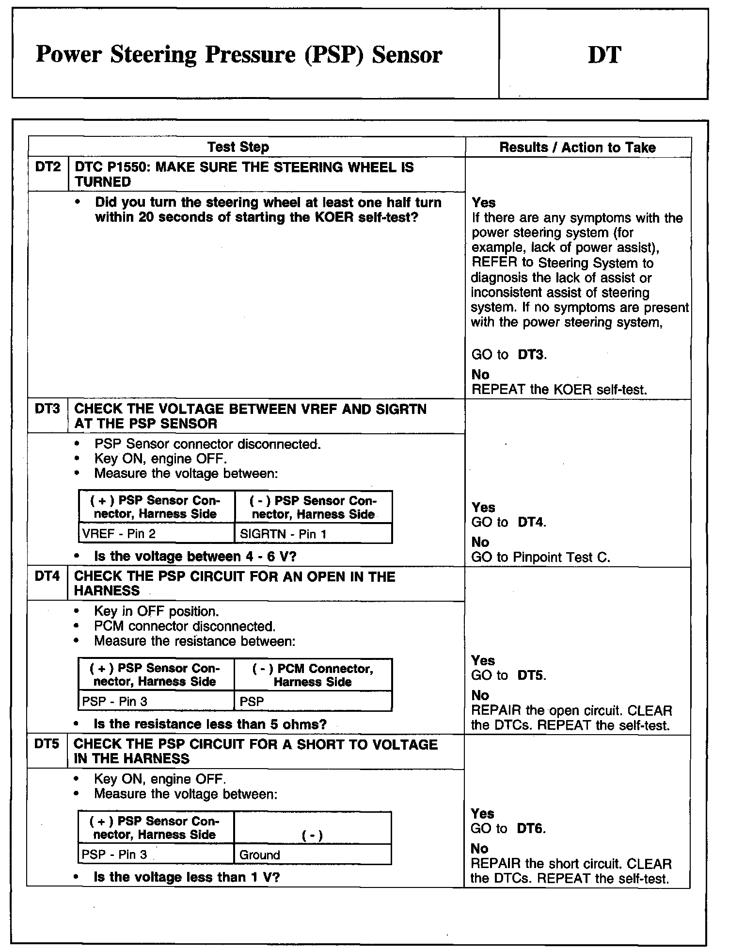 PINPOINT TEST DT: POWER STEERING PRESSURE (PSP) SENSOR