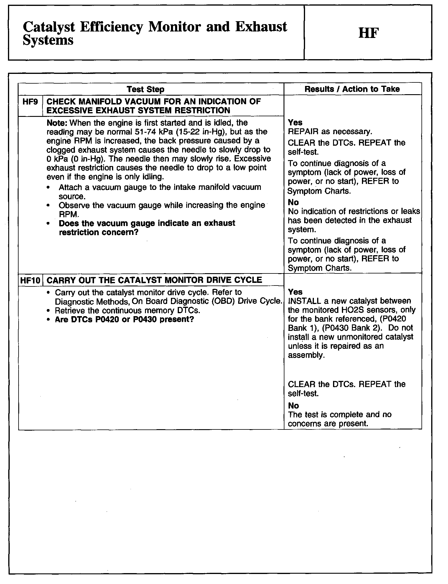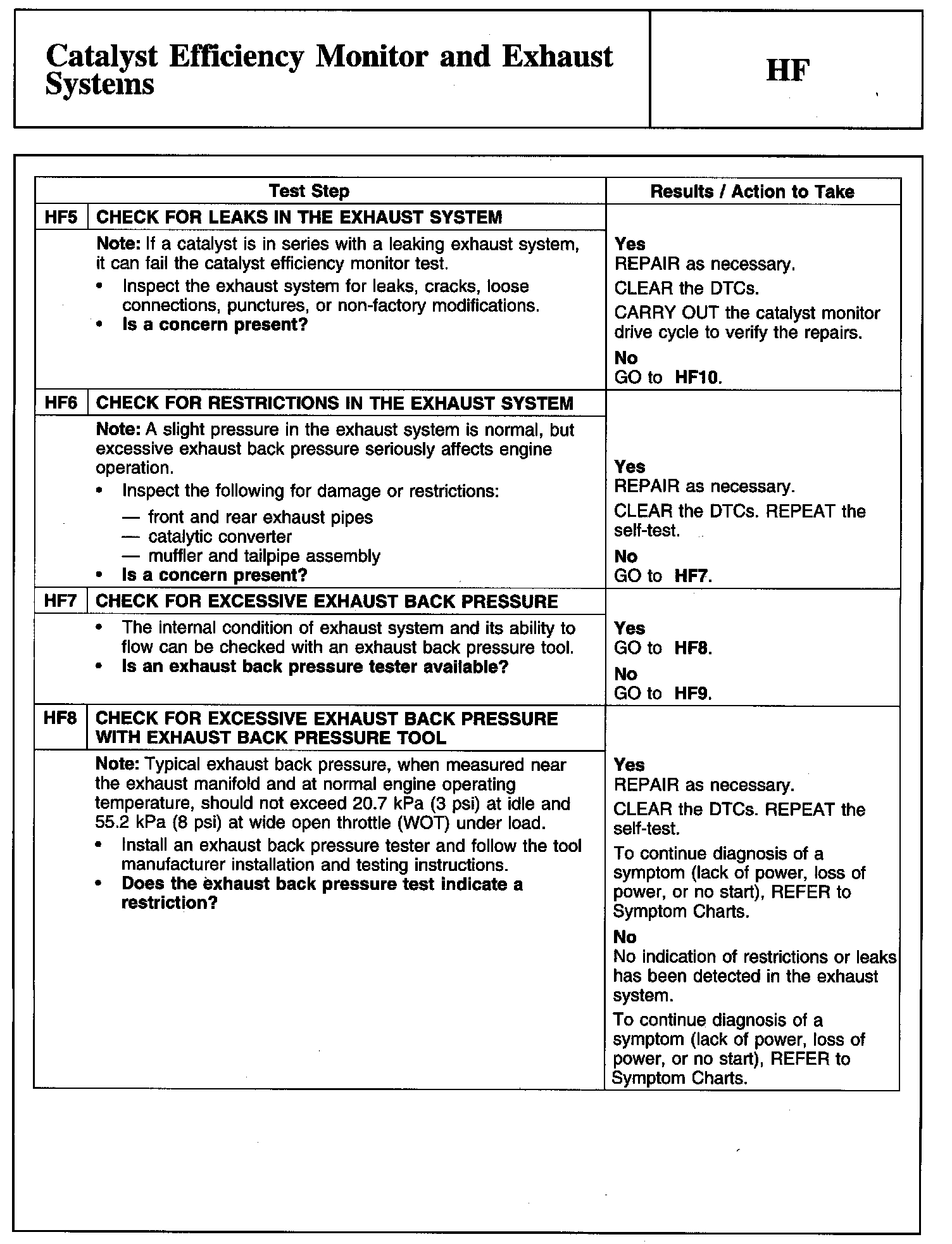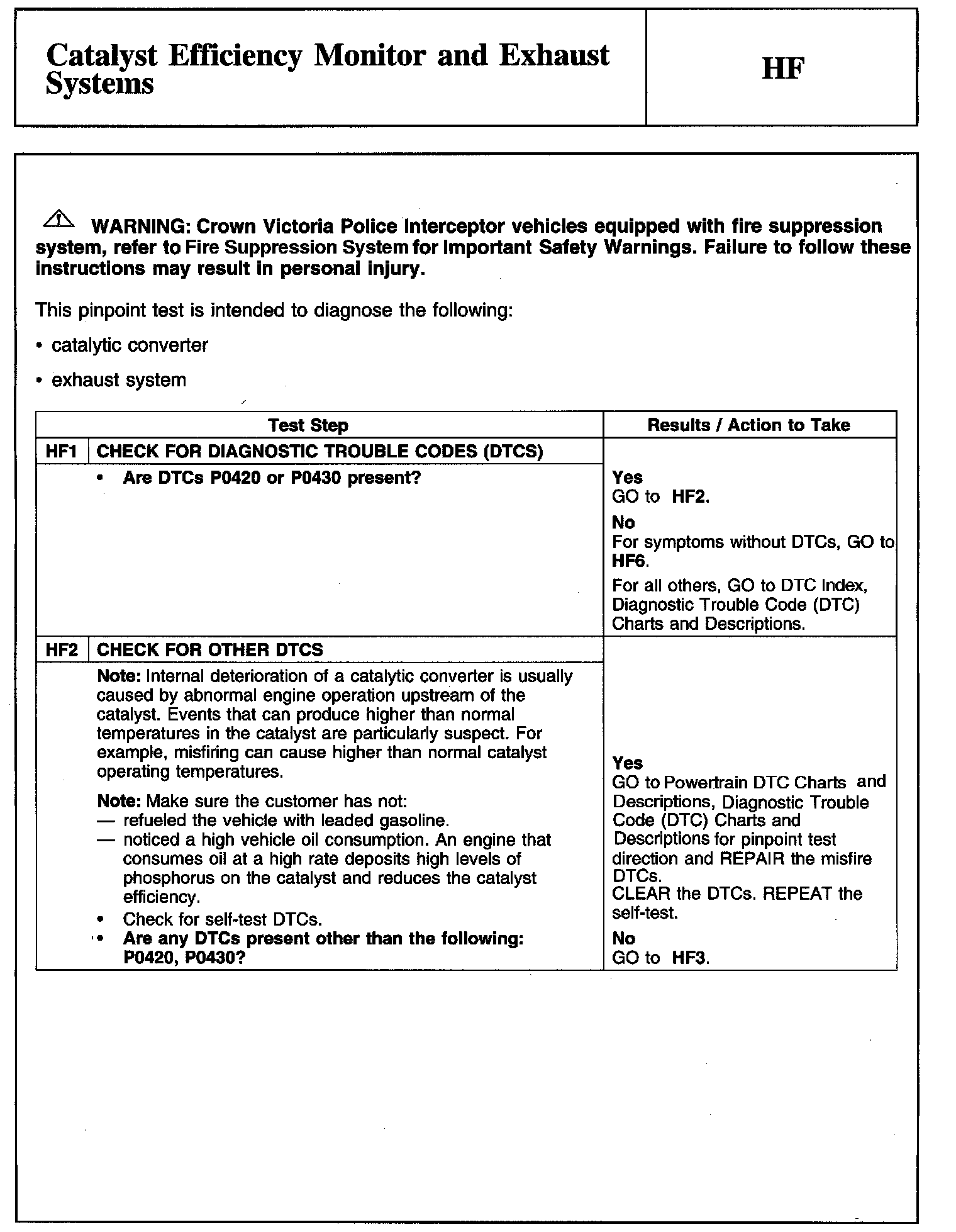 Tests HF: Catalyst Efficiency Monitor and Exhaust Systems