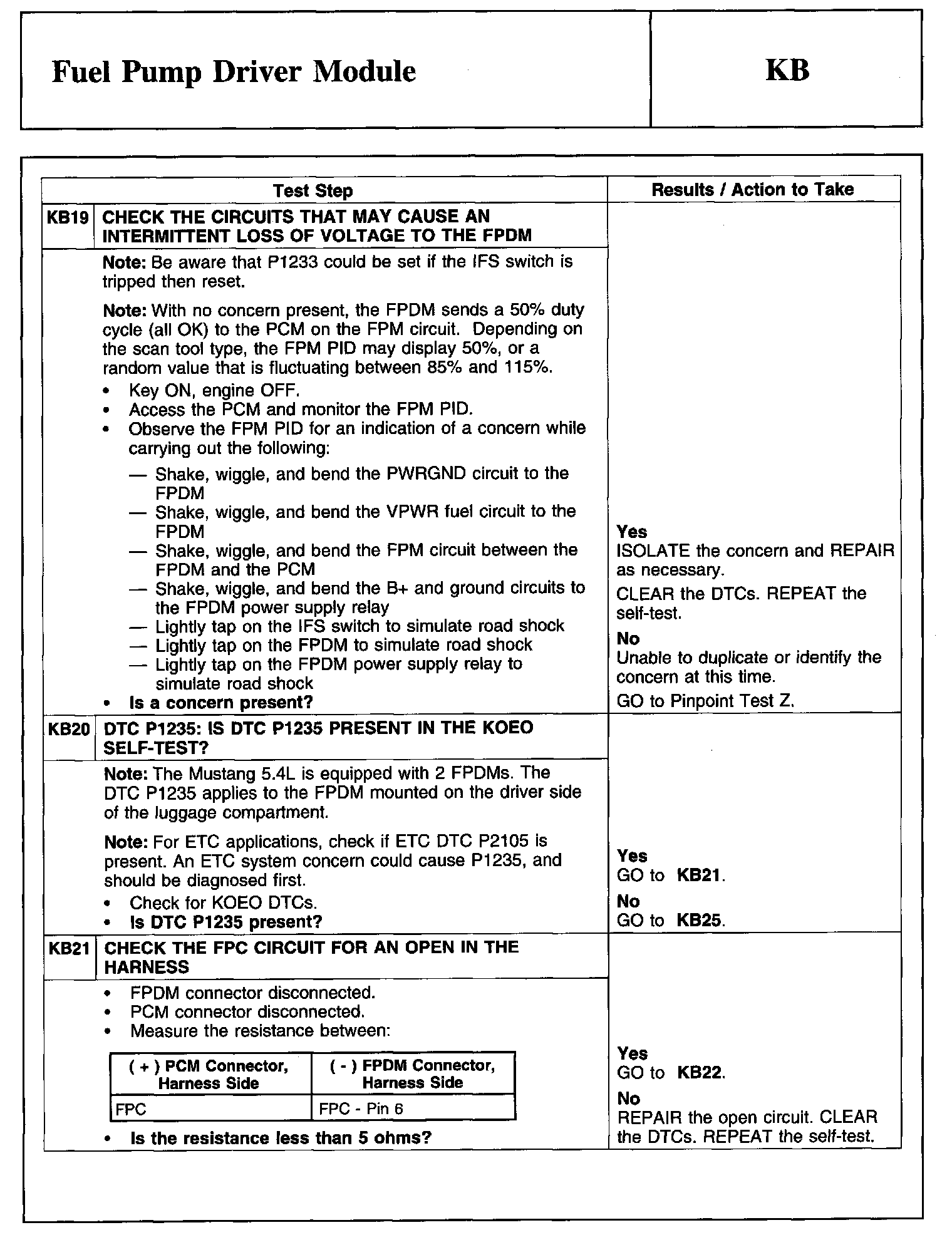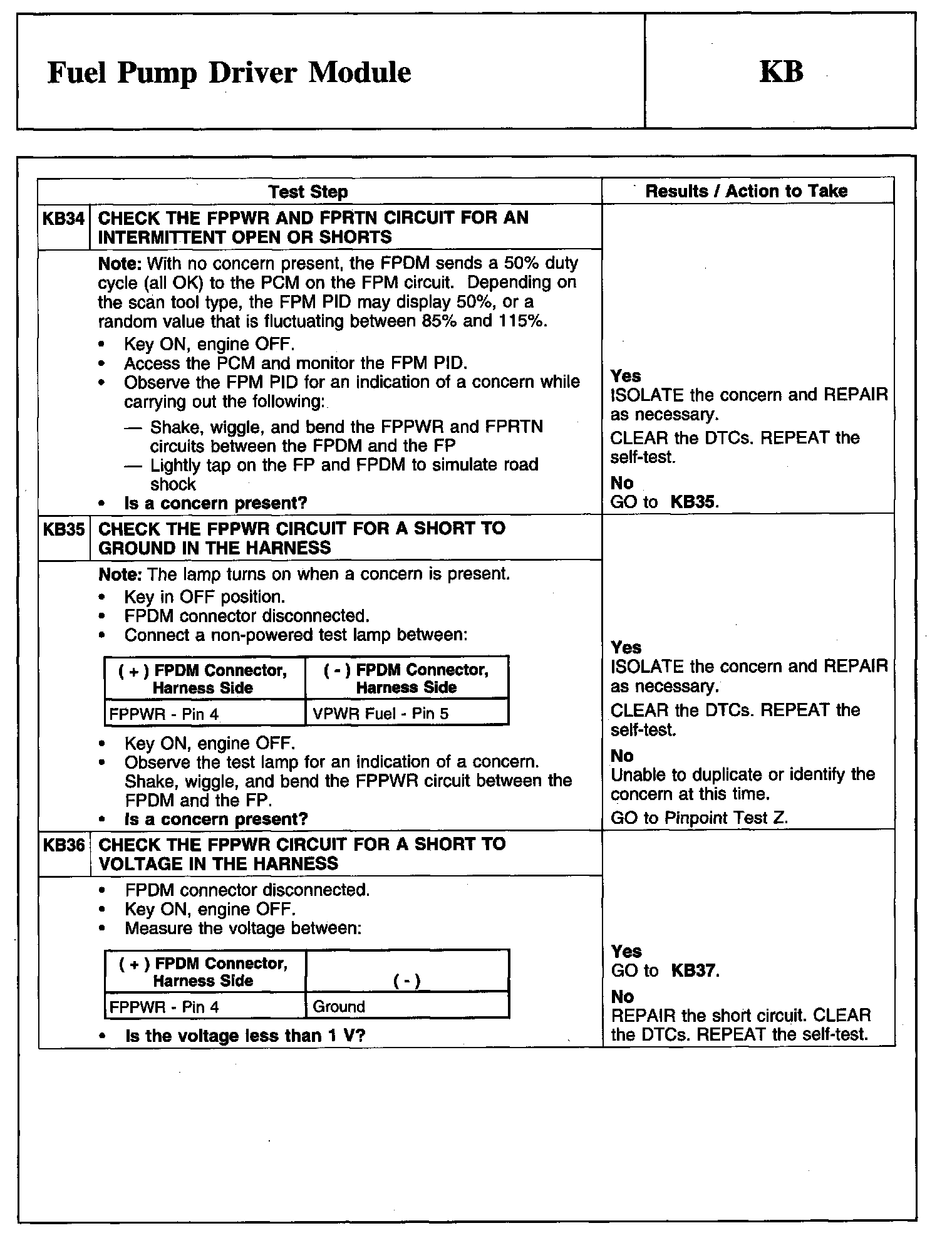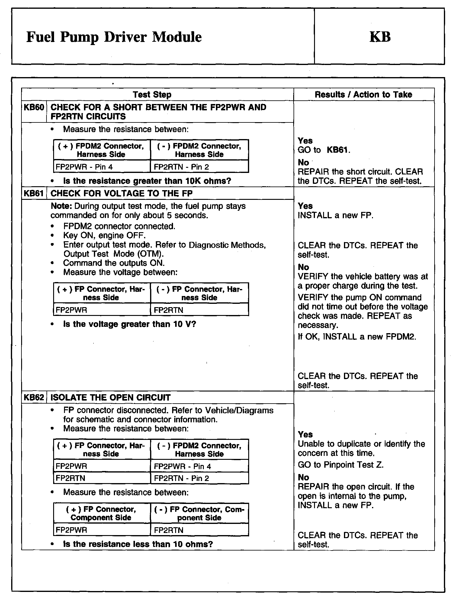 PINPOINT TEST KB: FUEL PUMP DRIVER MODULE