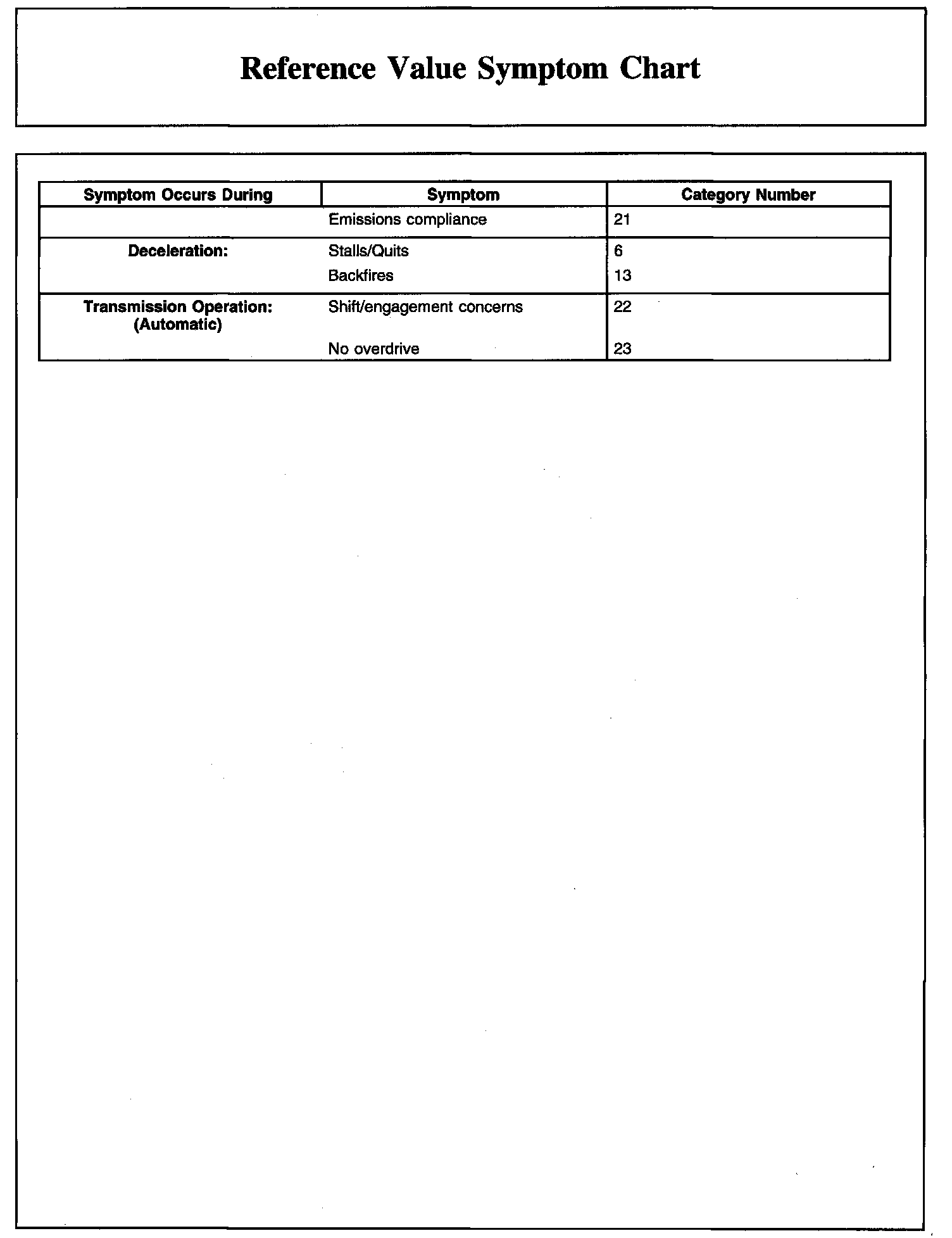 Reference Value Symptom Chart (Part 1):