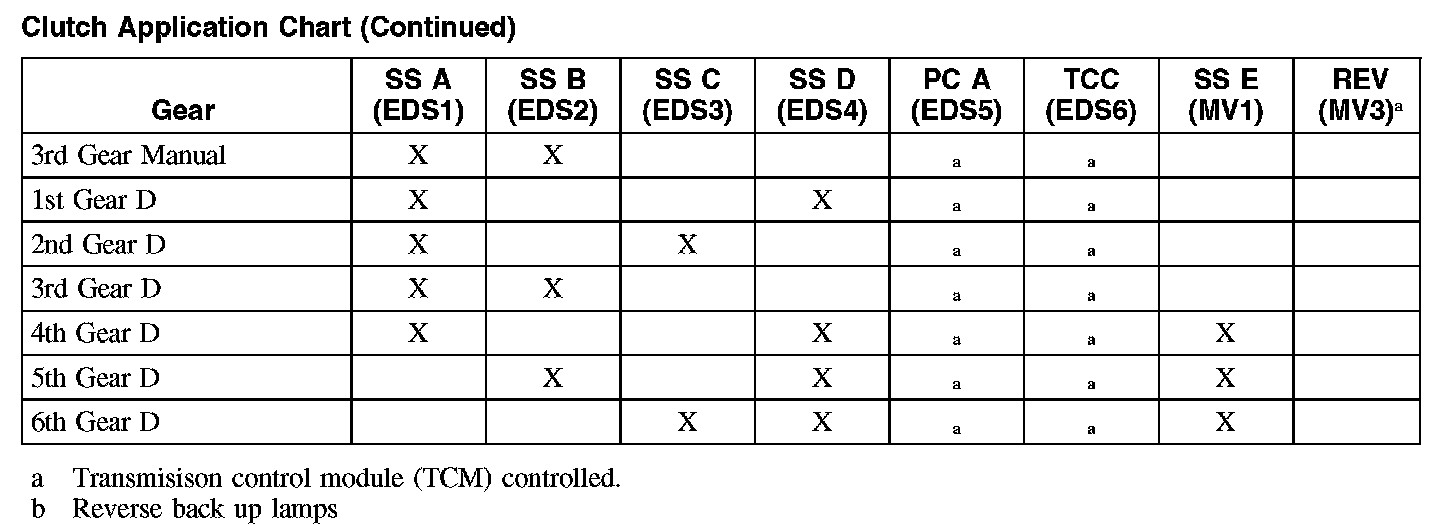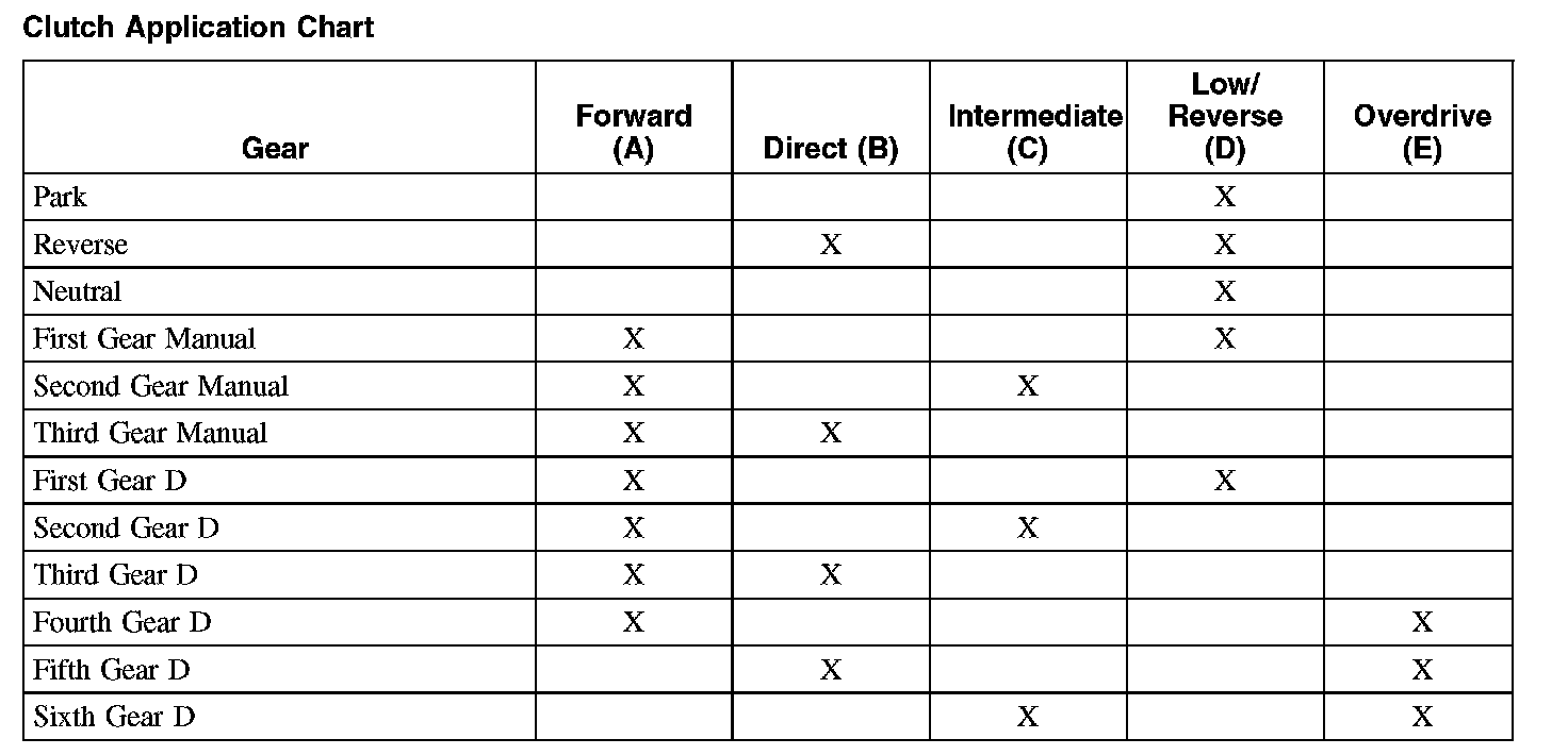 Clutch Application Chart