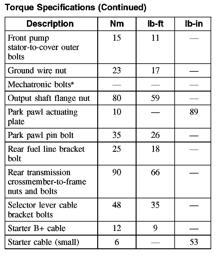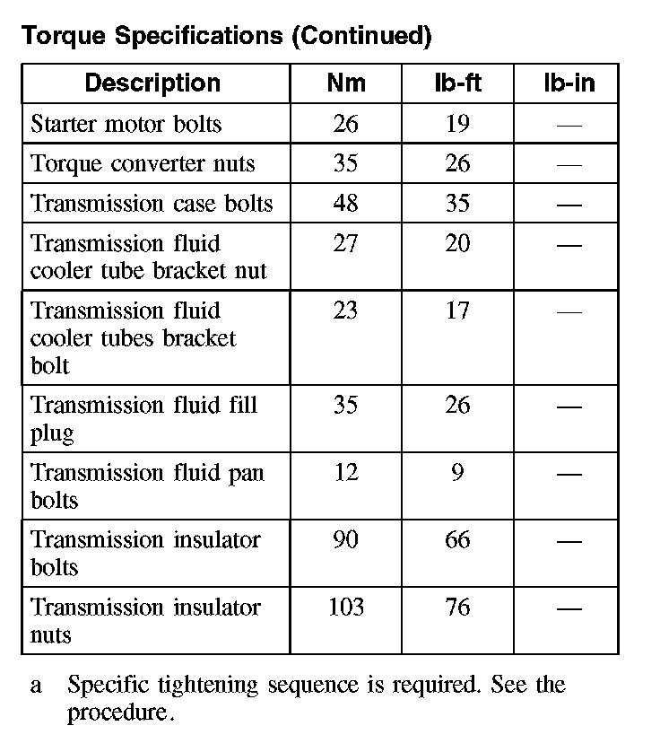 Torque Specifications