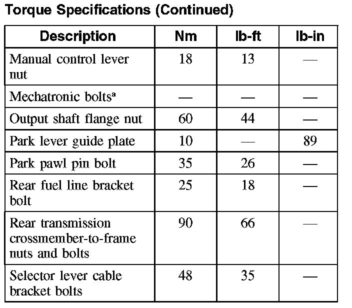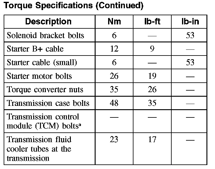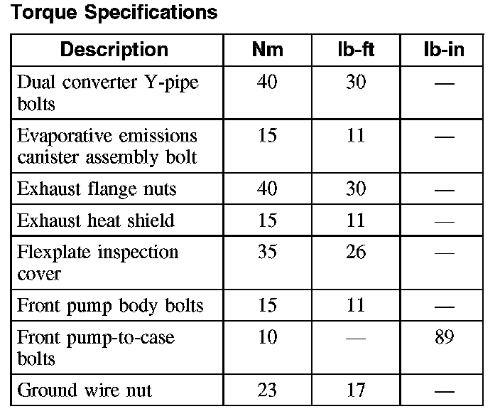 Torque Specifications