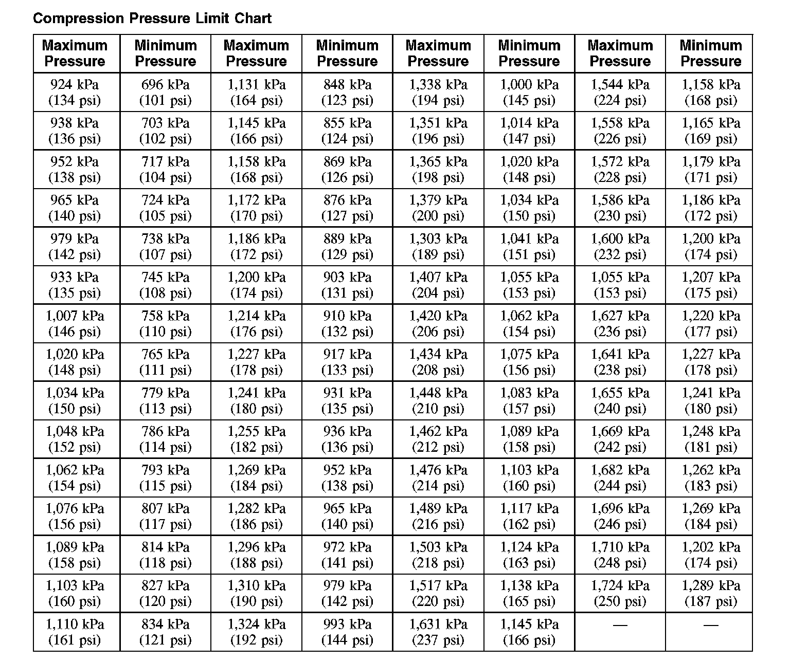 AllData Editors Note - Ford does not provide a cranking pressure specification, only an acceptable range.Compression Test - Test Results