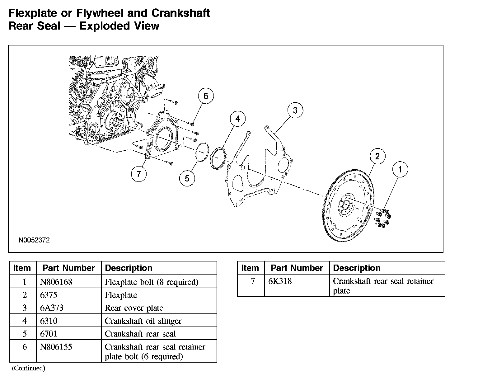 FlexplateFlexplate or Flywheel and Crankshaft Rear Seal - Exploded View: