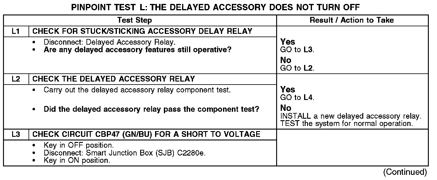 PINPOINT TEST L: THE DELAYED ACCESSORY DOES NOT TURN OFFNormal Operation