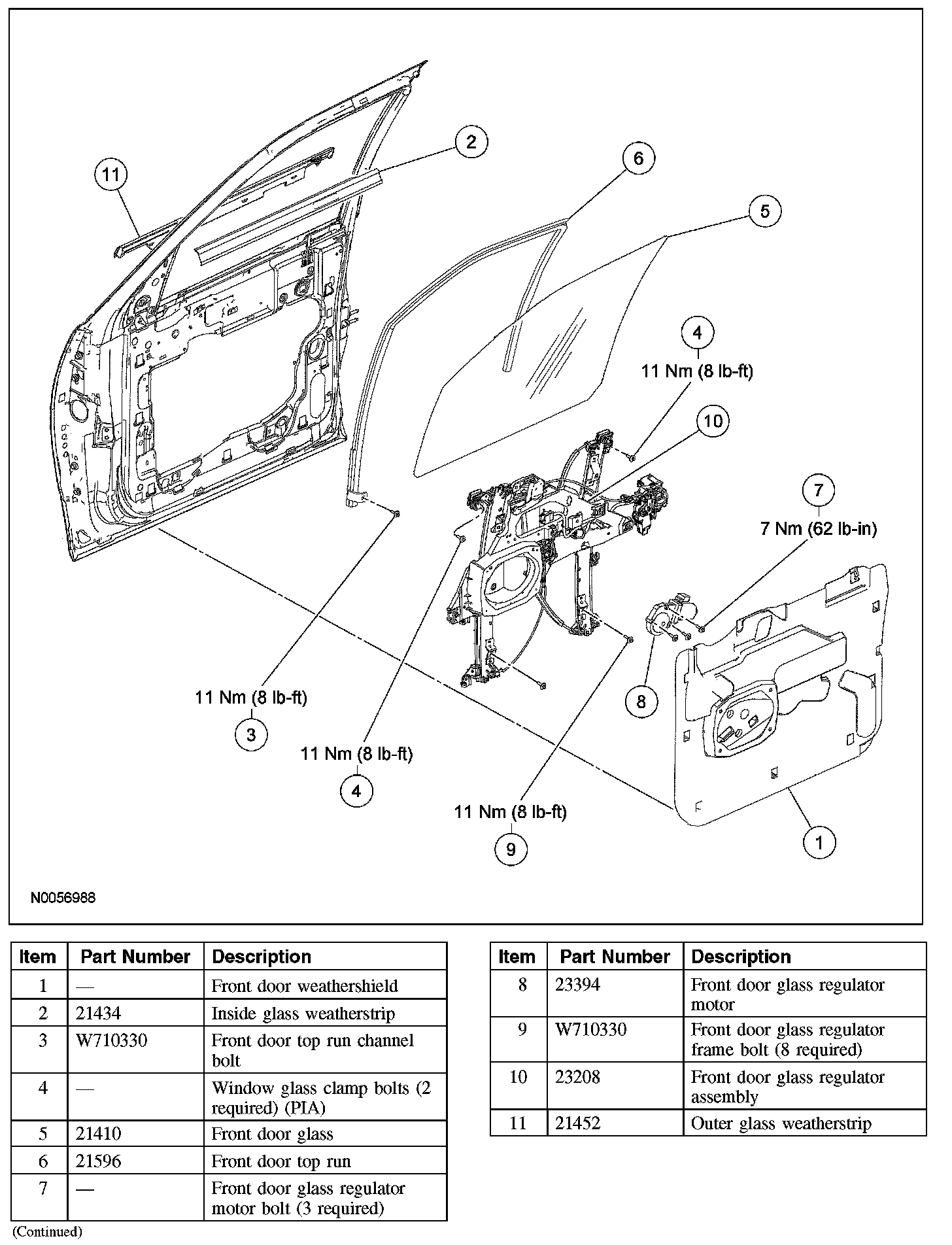 4. Raise the window glass until it stalls in the up position. Tighten the window glass clamp bolts to 11 Nm (8 lb-ft).