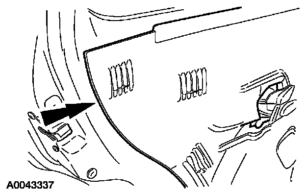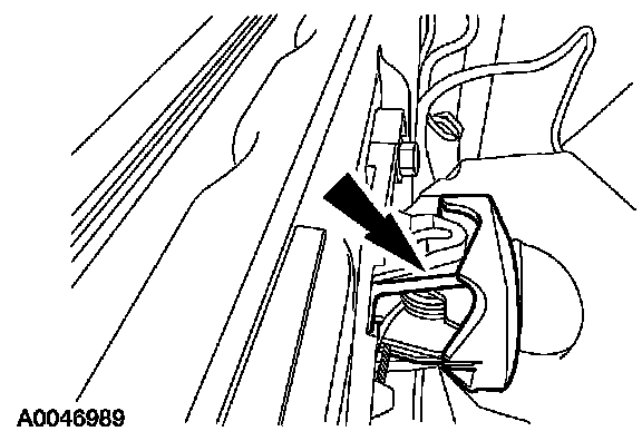 - Lift upward on the interior door handle retaining bracket and pivot the interior door handle out of the bracket.