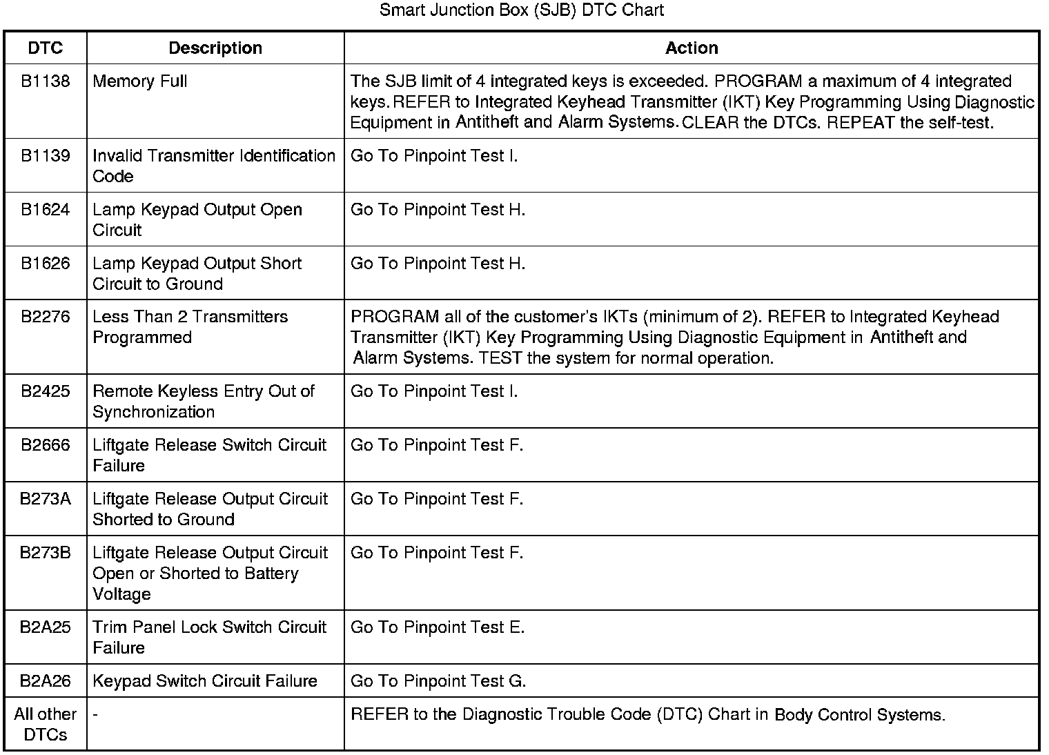 Smart Junction Box (SJB) DTC Chart