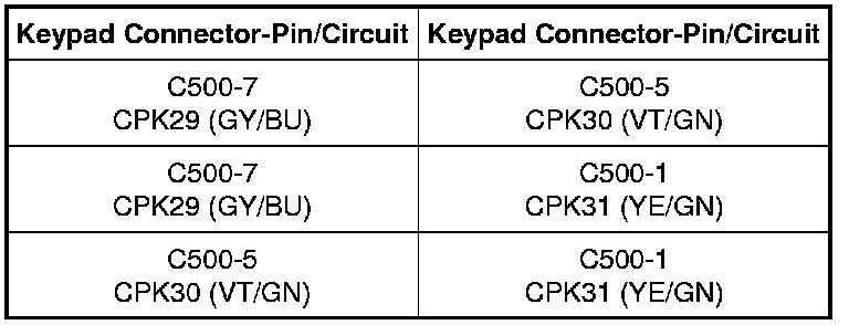 - Disconnect: Keyless Entry Keypad C500.