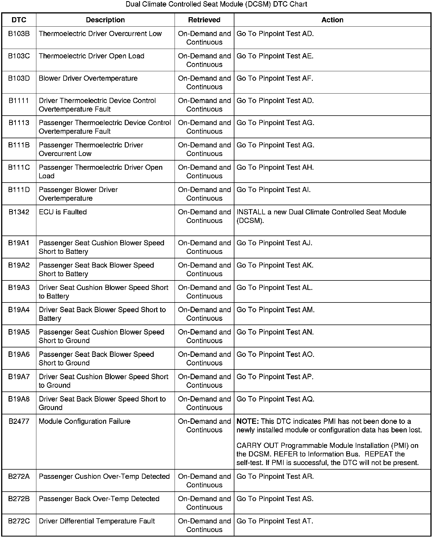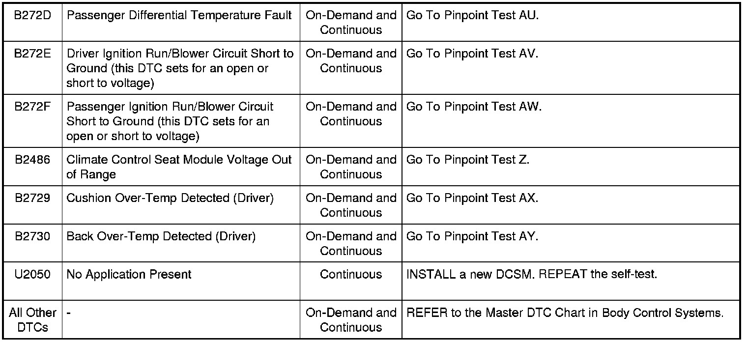 Dual Climate Control Module (DCSM) DTC Chart