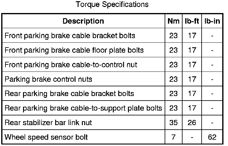 Parking Brake System: Specifications