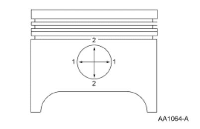 Measure the piston pin bore diameter in 2 directions on each side. Verify the diameter is within specification.