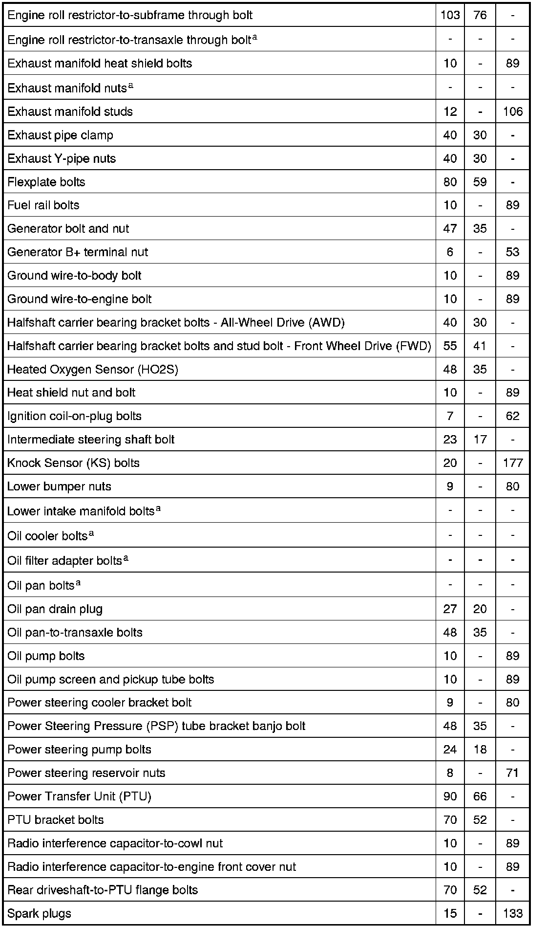 Torque Specifications