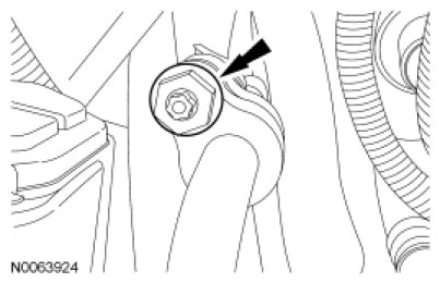33. NOTICE: The transaxle through bolt must be loosened prior to removing the engine mount and lowering the front of the engine. Failure to follow these instructions may cause internal damage to the hydraulic transaxle mount and possible fluid leakage.