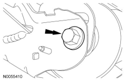 - Tighten the bolts one turn at a time in a criss-cross pattern until the engine front cover-to-cylinder block seal is released.