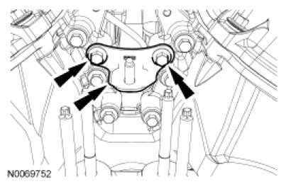 Remove the bolts, the LH and the RH Variable Camshaft Timing (VCT) solenoids.