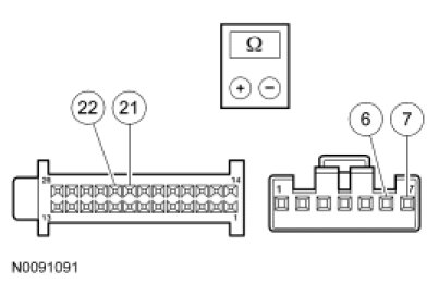 - Measure the high-side resistance between HVAC module - EMTC C2357A-11, circuit LH111 (BN/WH), harness side and HVAC module - EMTC C2357A-7, circuit VH439 (GY/VT), harness side.