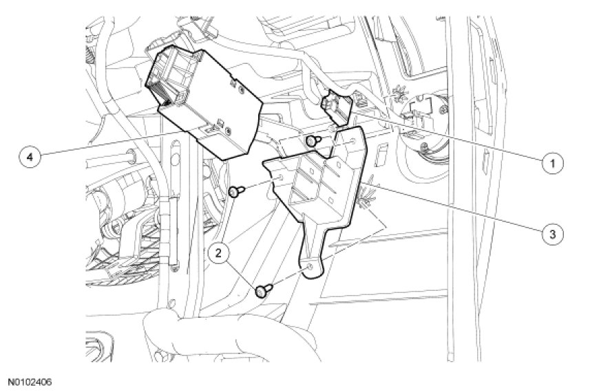 5. NOTE: The 3 screws are accessed by reaching through the side opening in the instrument panel and the opening under the steering column using a size T-20 torx(R) tool.