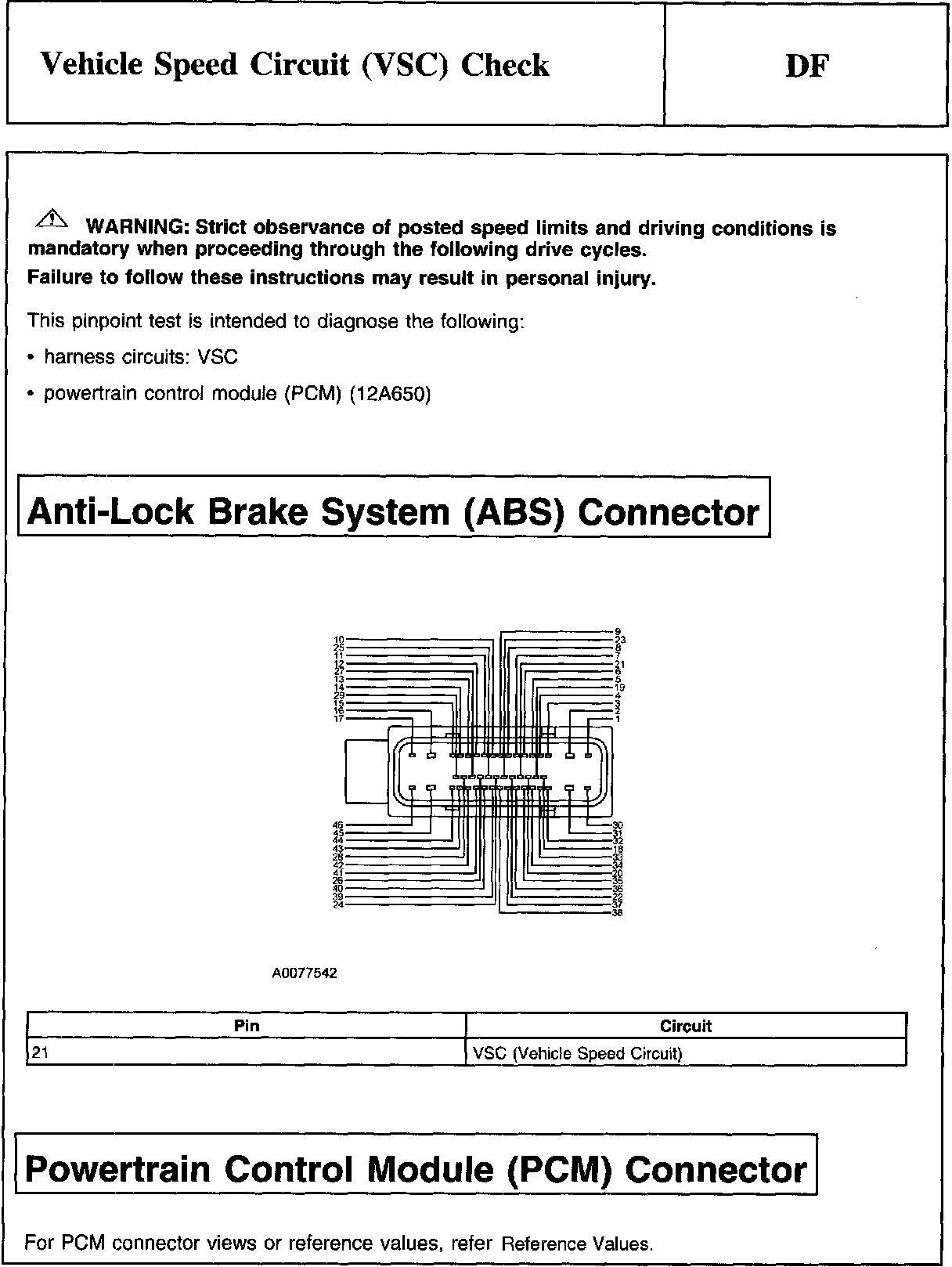 DF - Vehicle Speed Circuit (VSC) Check
