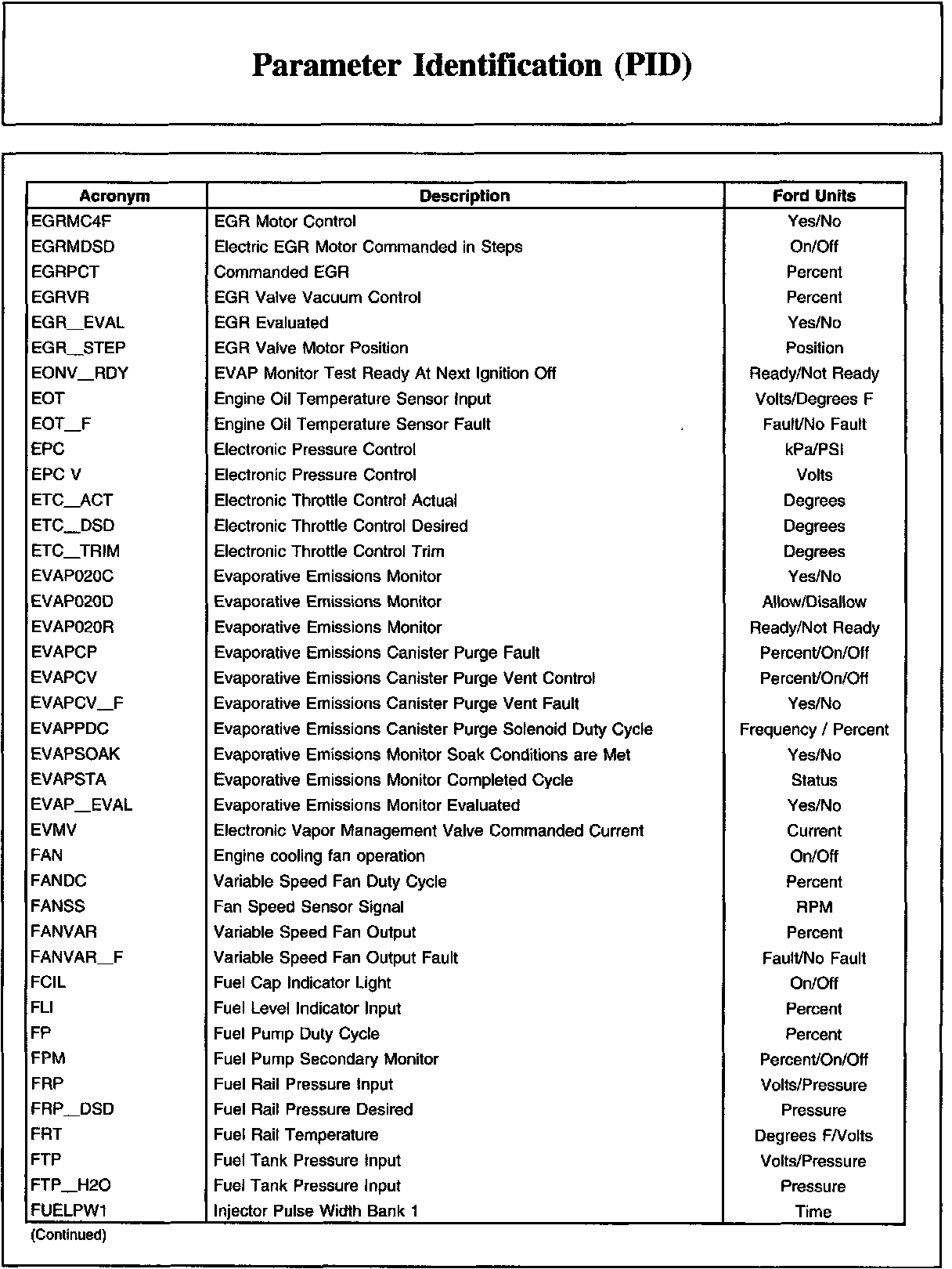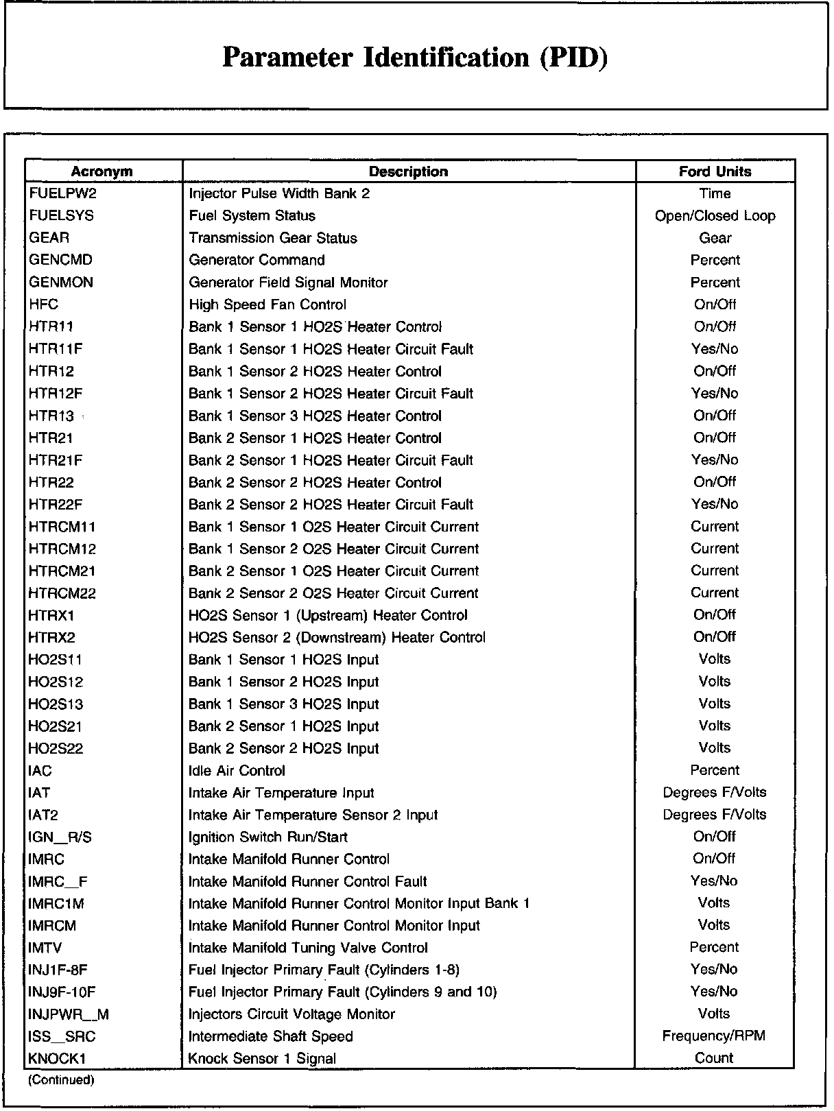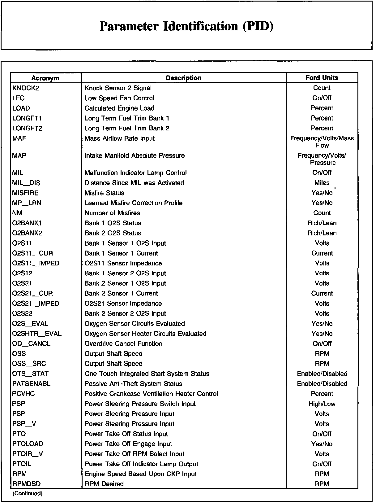 Parameter Identification (PID)Description And Generic OBD List: