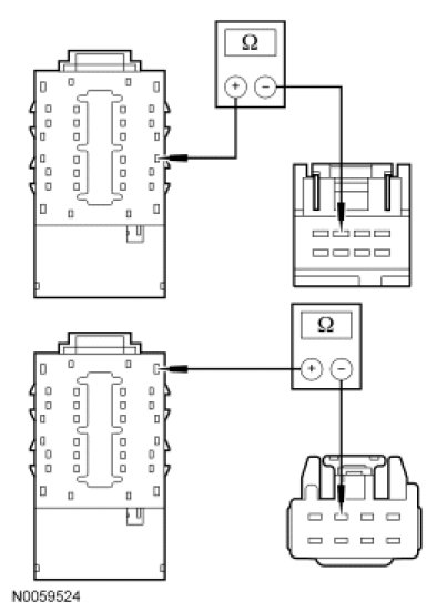 - Measure the resistance between LH front window control switch C535A-3, circuit CBP41 (BU), harness side and SJB C2280D-16, circuit CBP41 (BU), harness side; and between LH front window control switch C535B-3, circuit CBP47 (GN/BU), harness side and SJB C2280D-32, circuit CBP47 (GN/BU), harness side.