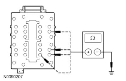 - Measure the resistance between the SJB C2280E-7, 8, 12, 24, circuit GD138 (BK/WH), harness side and ground.