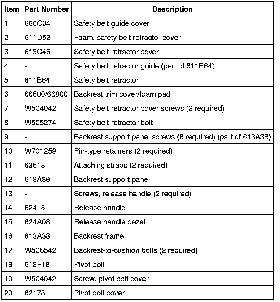 Seat - Exploded View, Second Row