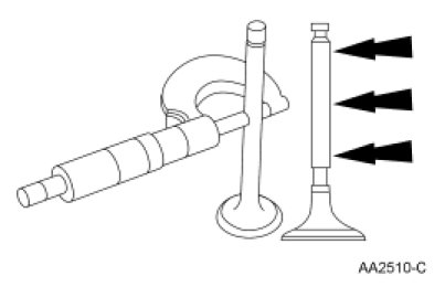 Measure the diameter of each intake and exhaust valve stem at the points shown. Verify the diameter is within specification.