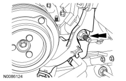 21. Disconnect the wiring harness retainer from the power steering pump studbolt.