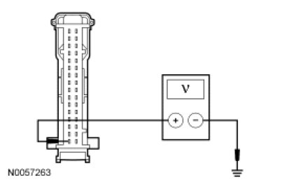 - Measure the voltage between the RETM C949-16, circuit SBP03 (BU/RD), harness side and ground.