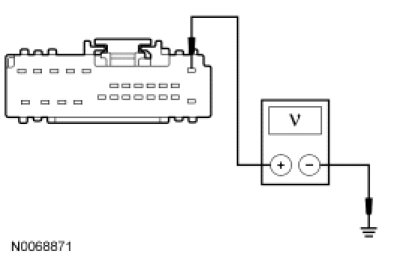 - Measure the voltage between the DSM C341b-1, circuit SBP02 (YE/RD), harness side and ground.