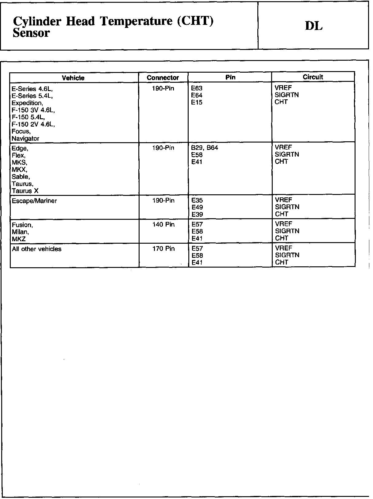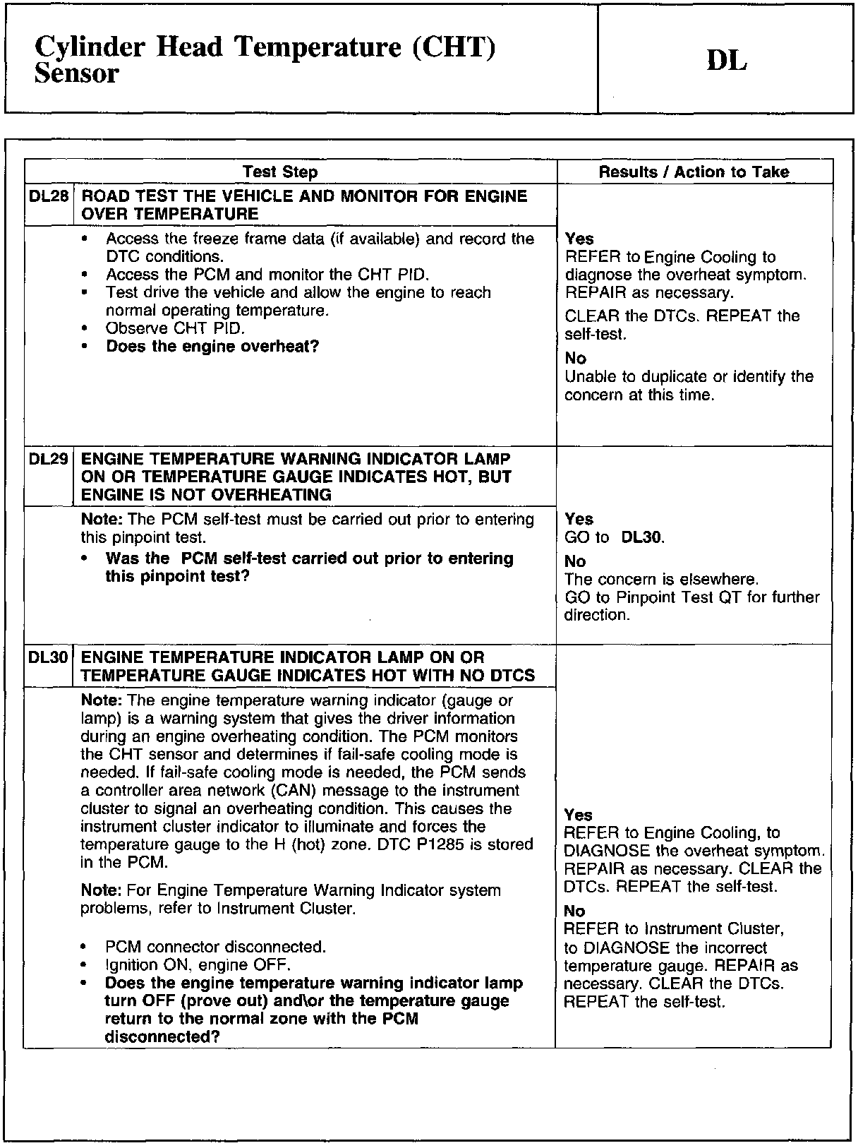 Cylinder Head Temperature Sensor Expected Values: