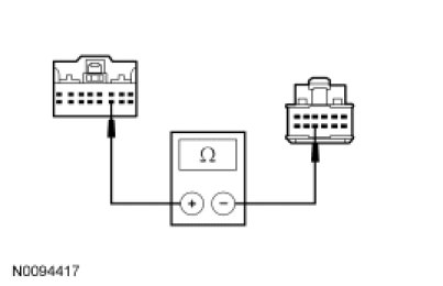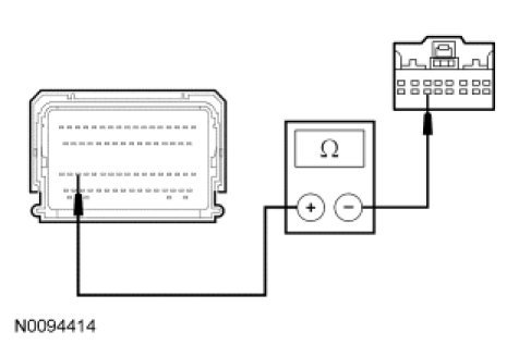 - Measure the resistance between the clockspring C218a pin 14, component side and the upper clockspring C218b pin 9, component side.