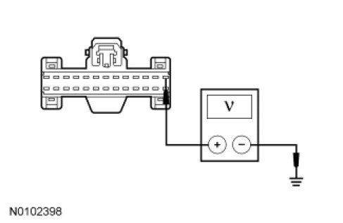 - Measure the voltage between the HVAC module C2356a-1, circuit SBP15 (WH/RD), harness side and ground.