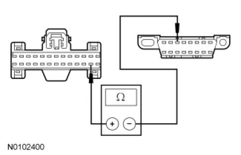 - Measure the resistance between the HVAC module C2356a-14, circuit VDB07 (VT/OG), harness side and the DLC C251-11, circuit VDB07 (VT/OG), harness side.