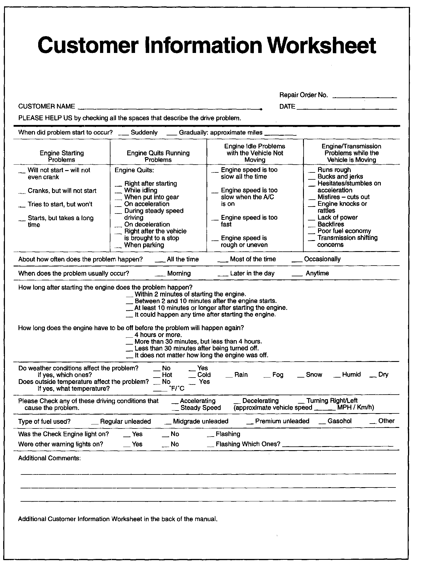 Customer Information Worksheet