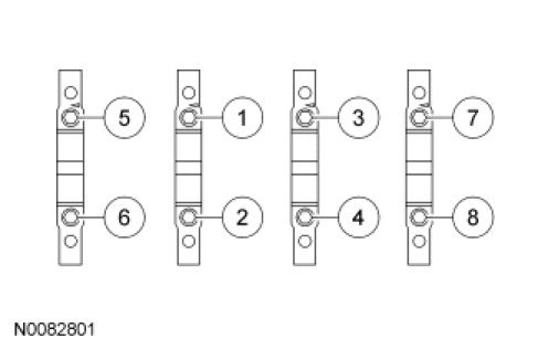 Stage 1: Tighten fasteners 1 through 8 to 60 Nm (44 lb-ft).
